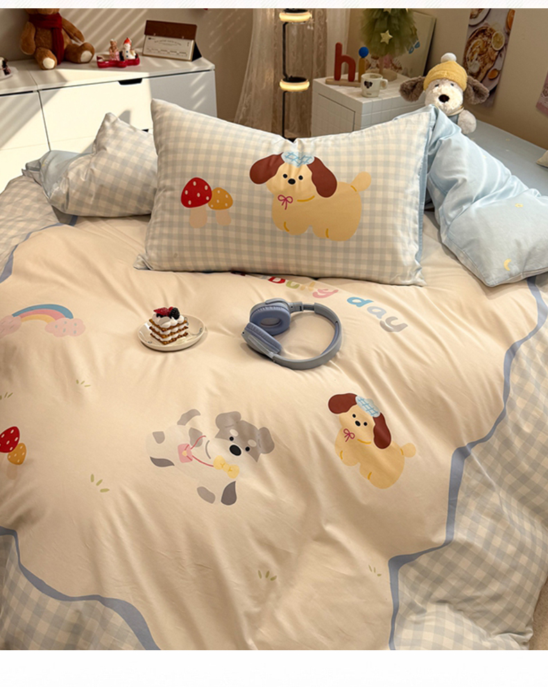 (总)麦田家纺 2025新款A类云感木棉皱皱双层纱印花四件套,春意浓,繁花,花颜,简意,开心小熊,腊肠犬,浪漫花语,免挽星辰,甜心格,小蓝町,樱桃格,紫韵