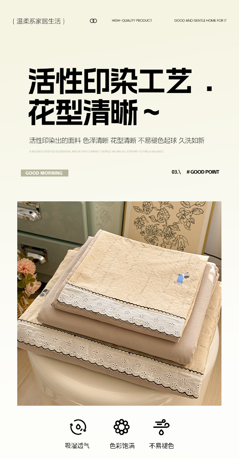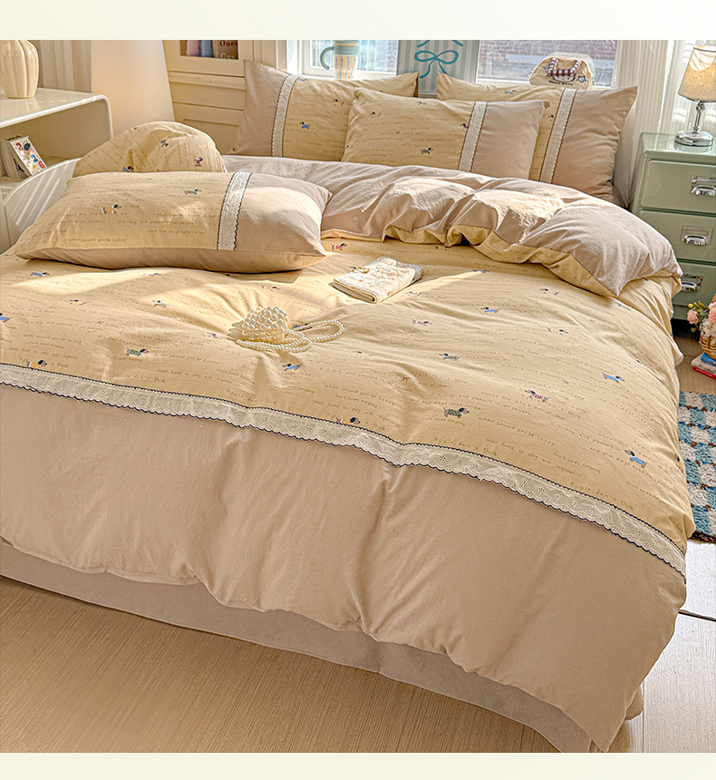 当前位置: 91家纺网 > 商品网购 > 床品套件 > 四件套 > 水洗棉四件套 > 逸林家纺《原希尔顿逸林》 2026新款春款古法水洗棉法式立体全棉花边拼接款四件套学生三件套单品被套枕套 狗狗家族