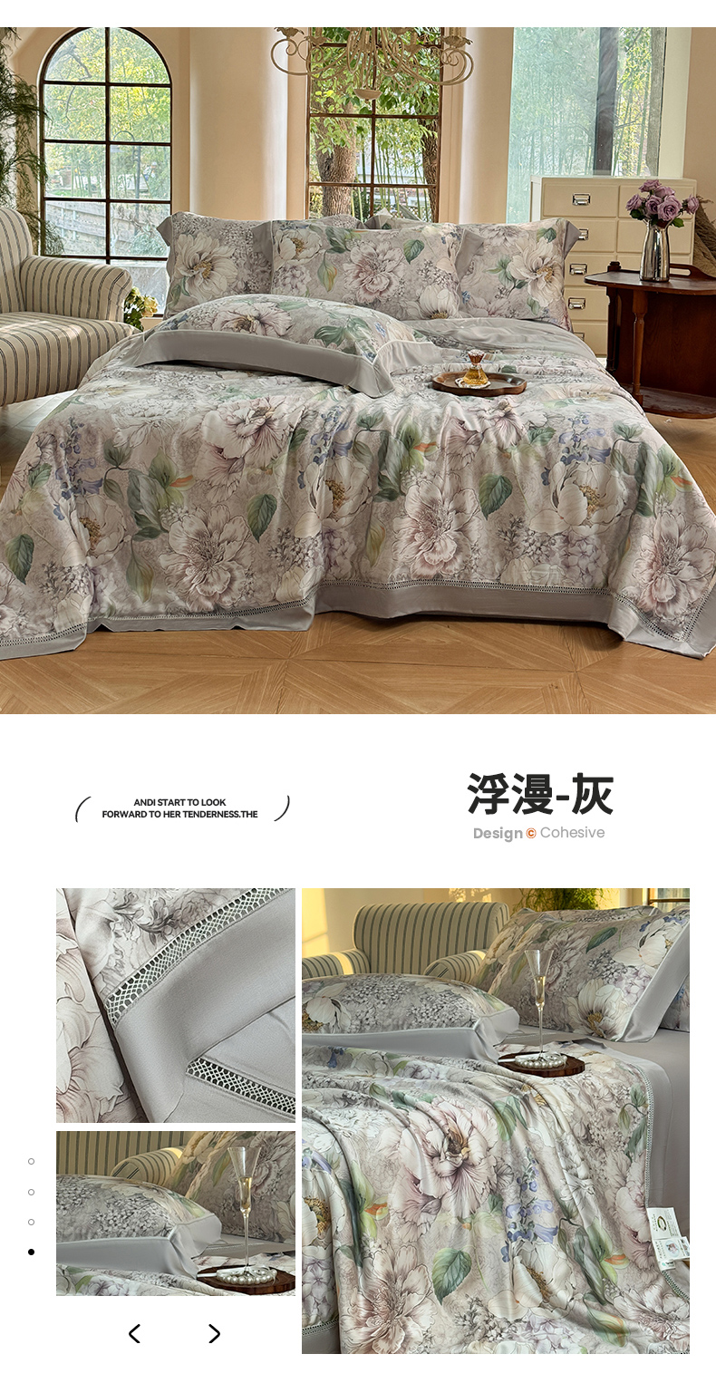 (总)娇逸家居 2026新款60s兰精天丝数码印花四件套,焕新,卡洛琳-灰,卡洛琳-咖,伶野,秋灵-粉,秋灵-黄,野趣咖,野趣-米,遇春,烛悦-黑,烛悦-灰