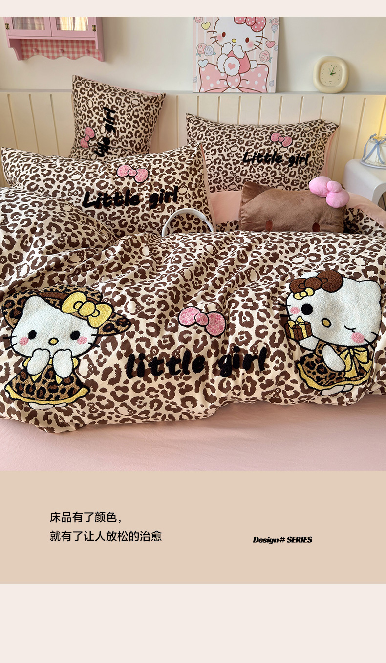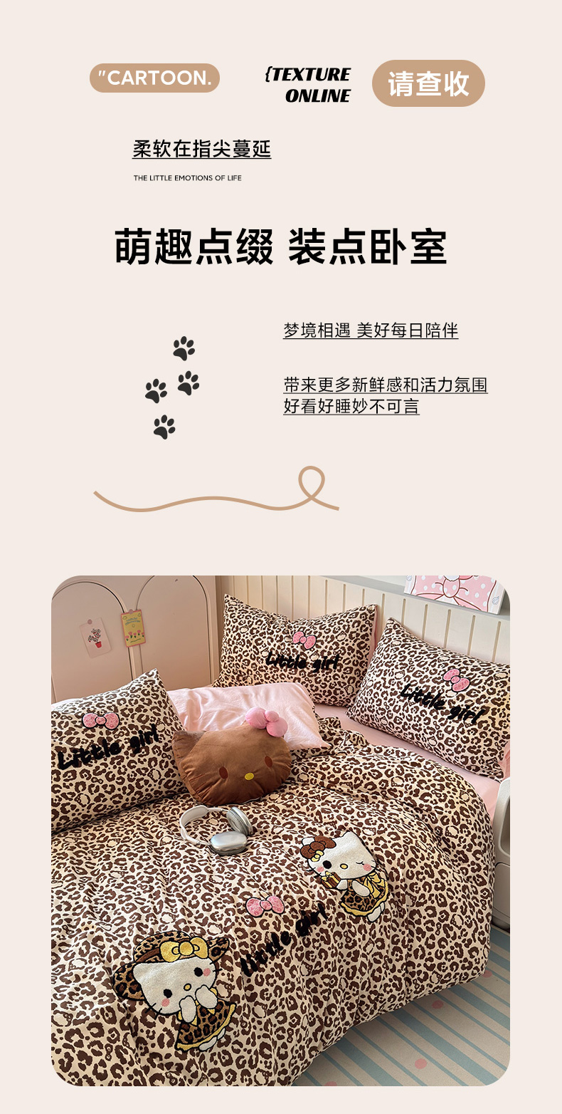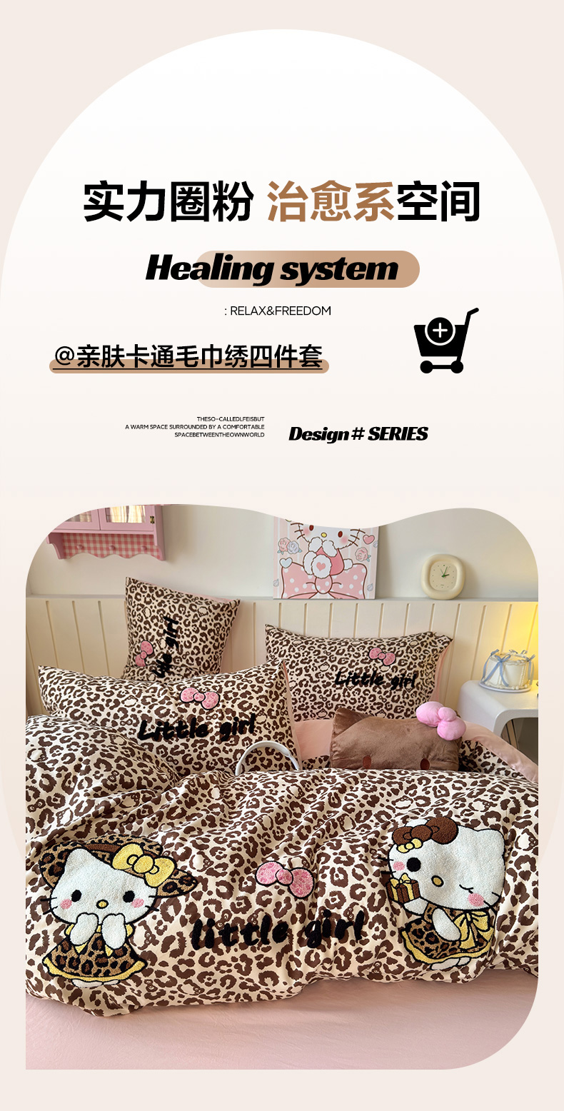 当前位置: 91家纺网 > 商品网购 > 床品套件 > 四件套 > 毛巾绣四件套 > 欣宜家纺 2026新款云朵棉毛巾绣床上四件套卡通被套床单学生宿舍三件套 豹纹猫-咖