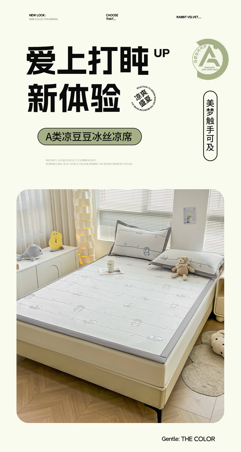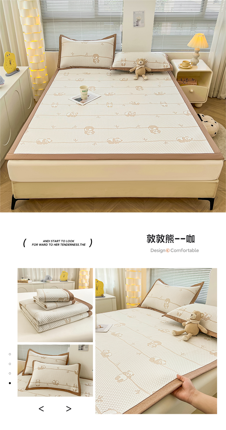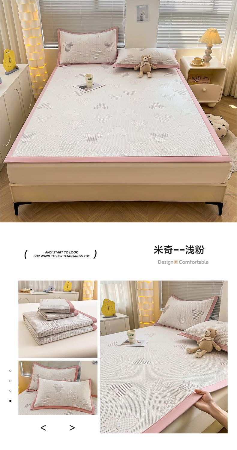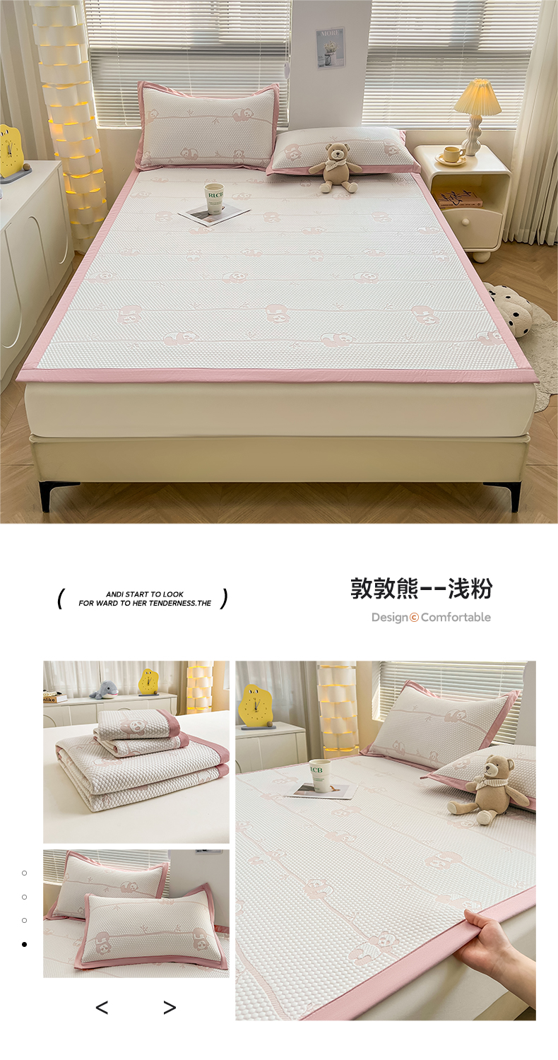 (总)凯罗 2026新款可水洗凉豆豆夏季席子凉席三件套,Hello--熊,爱心小熊--浅粉,敦敦熊--浅粉,敦敦熊--蓝灰,爱心小熊-咖,花儿朵朵--浅粉
