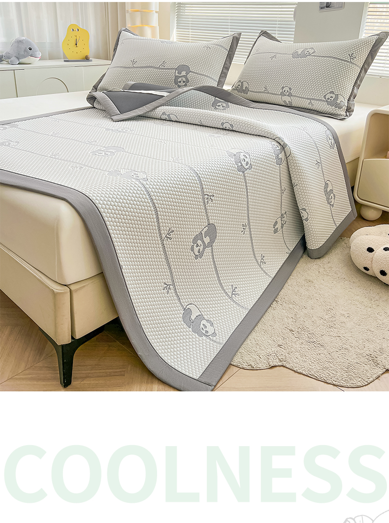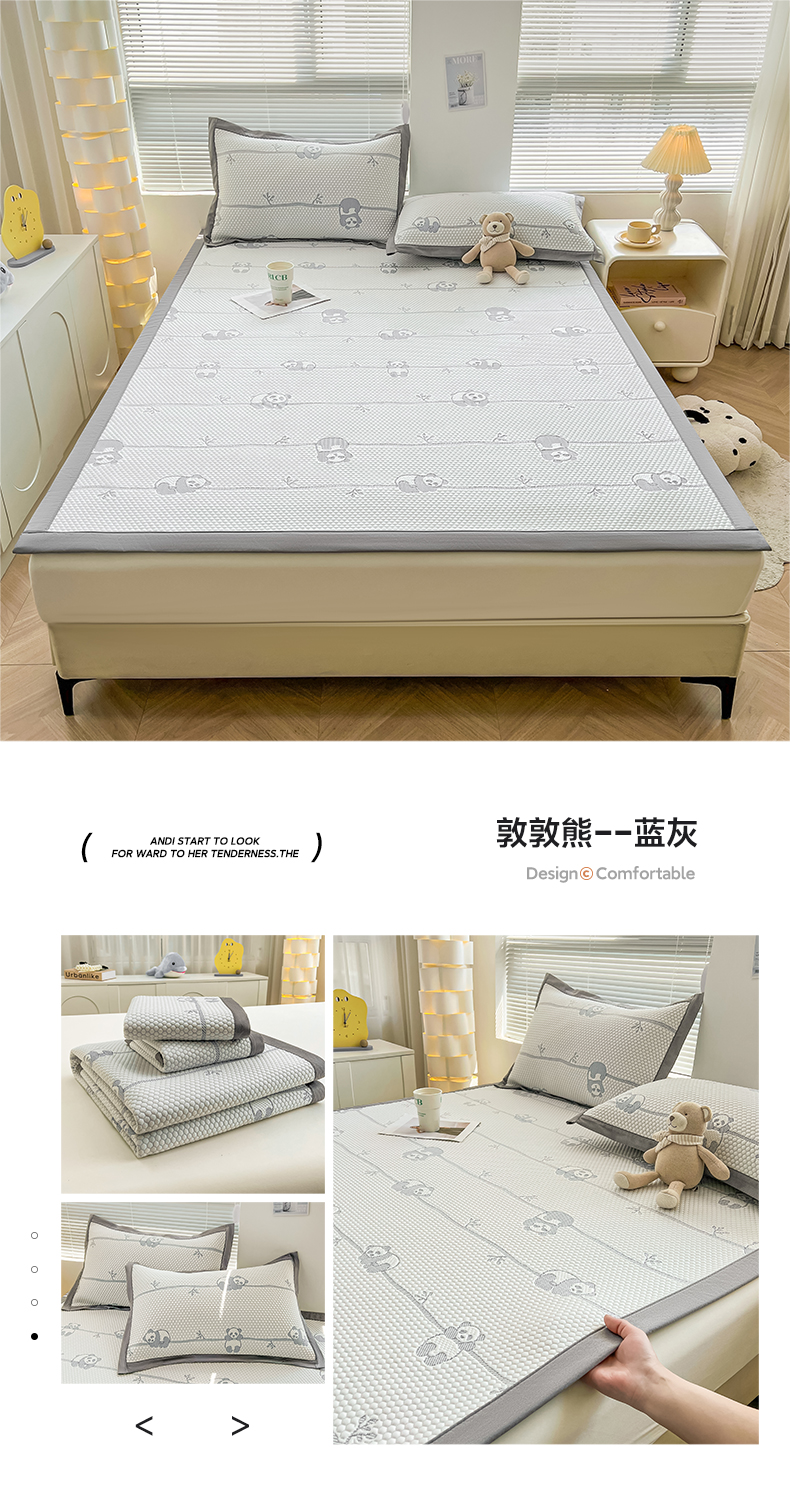 商品名称:凯罗 2026新款可水洗凉豆豆夏季席子凉席三件套 敦敦熊--蓝灰