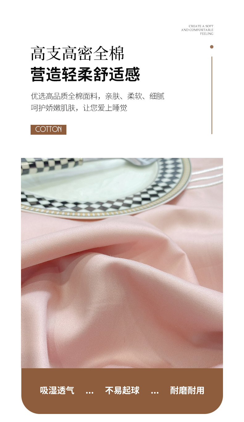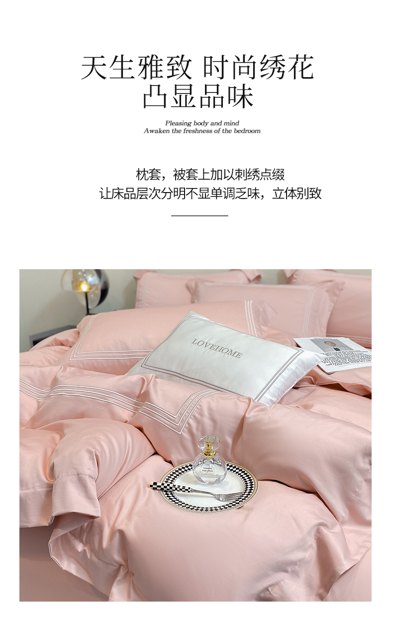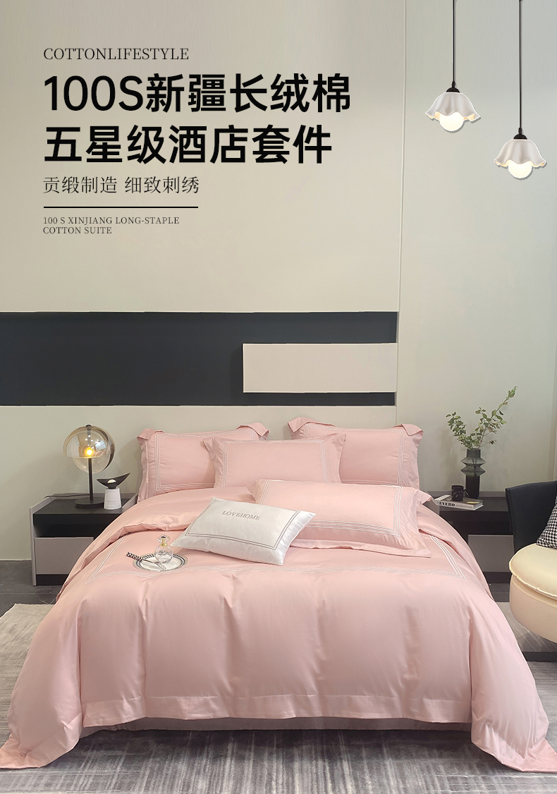 当前位置: 91家纺网 > 商品网购 > 床品套件 > 四件套 > 长绒棉四件套 > 家居1号家纺 2026新款100支新疆长绒棉纯棉四件套-爱丽丝 爱丽丝-粉豆沙
