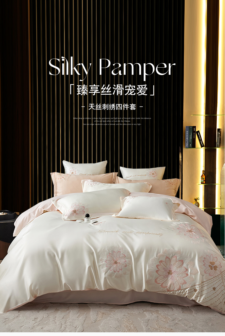 当前位置: 91家纺网 > 商品网购 > 床品套件 > 四件套 > 莱赛尔四件套 > (总)优贝家纺 2026新款天丝面料刺绣款四件套-花韵系列
