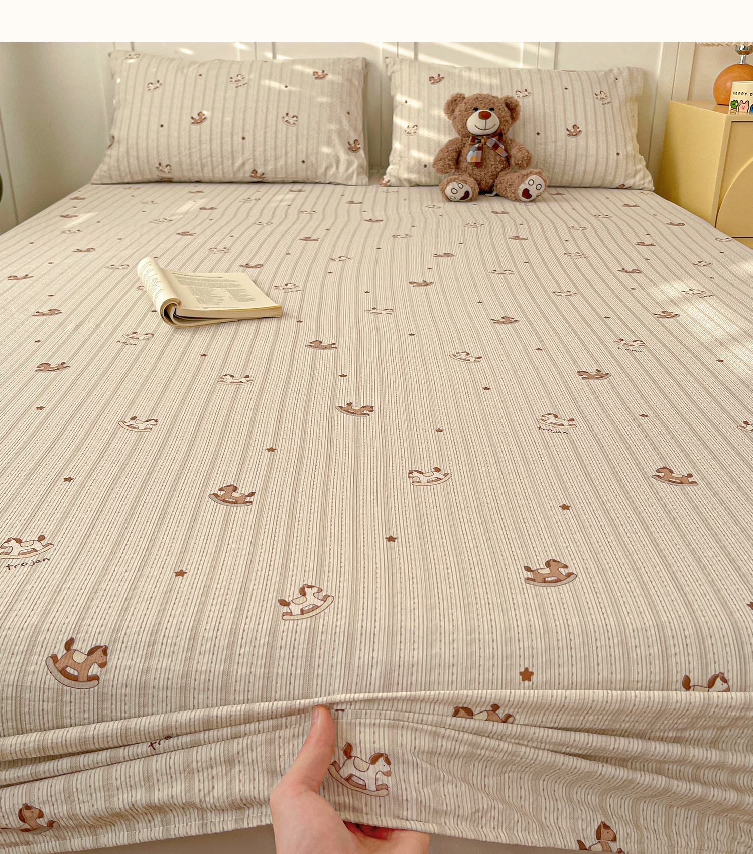 • 91家纺网 家纺一手货源 找家纺 小桃姐家纺 2025新款超柔印花云感泡芙双层纱床笠单件床笠二三件套 快乐小马