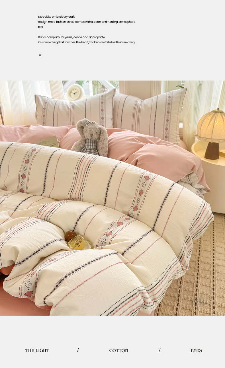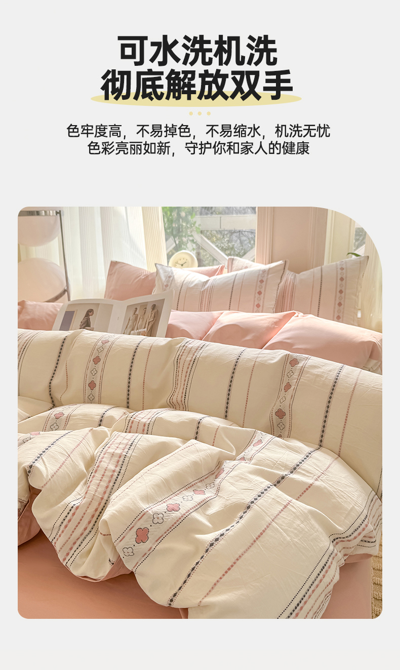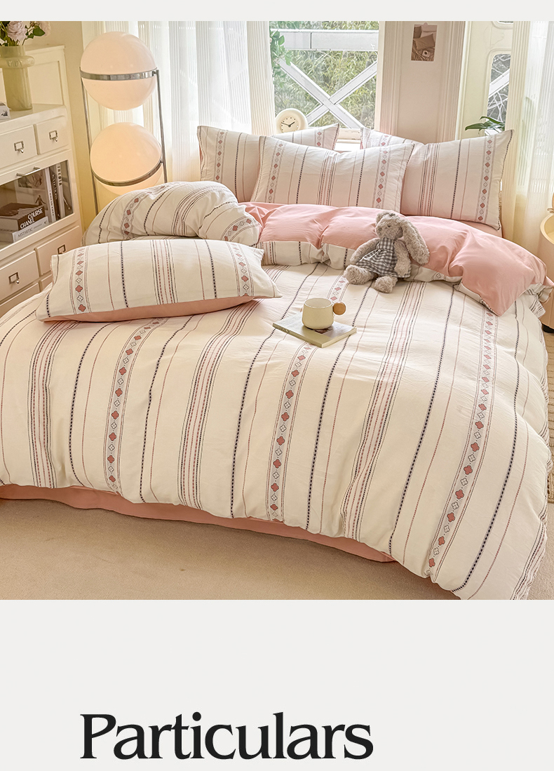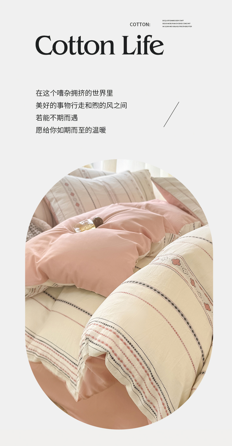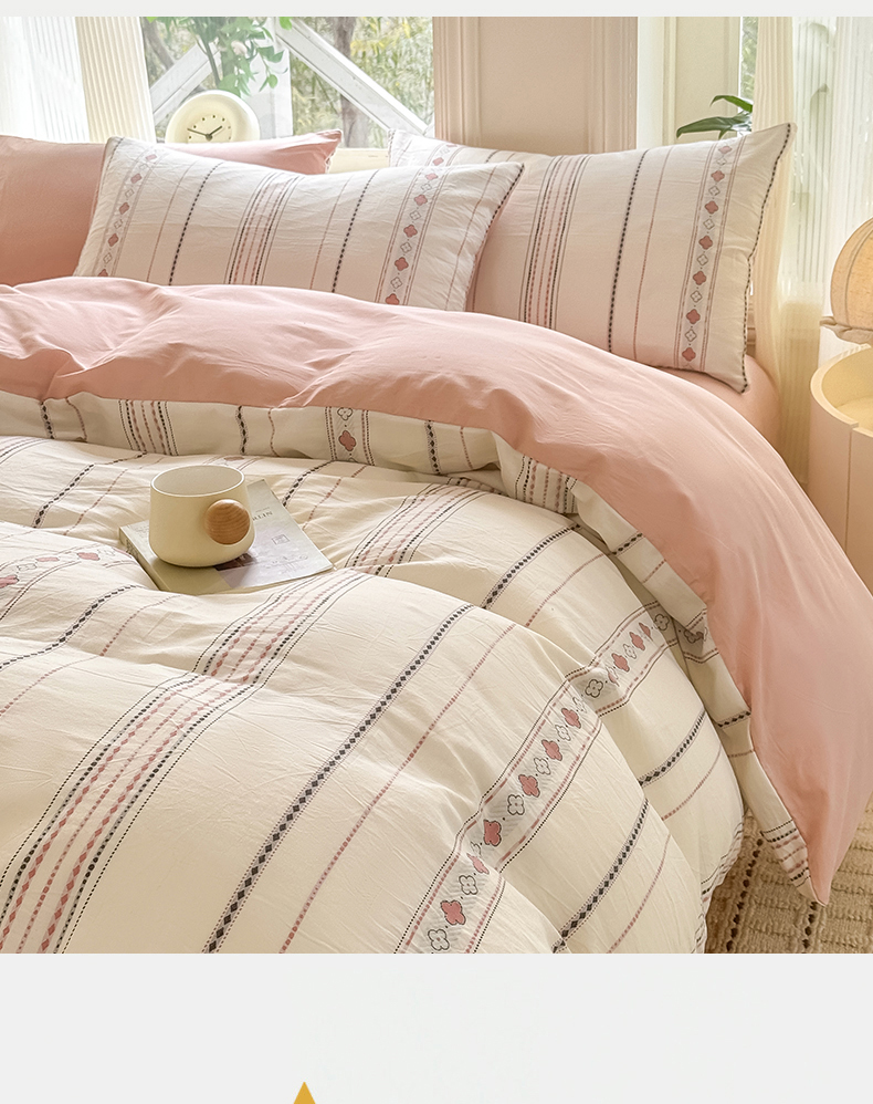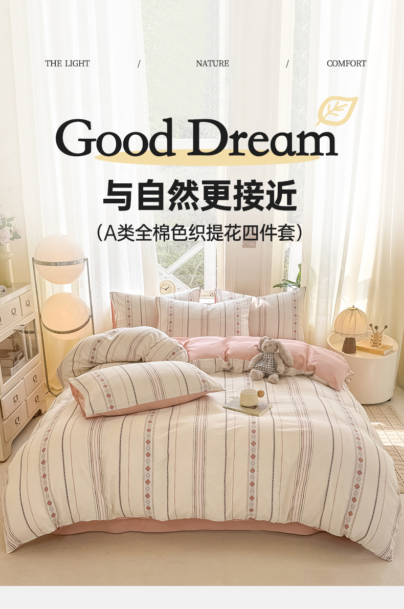 当前位置: 91家纺网 > 商品网购 > 床品套件 > 四件套 > 全棉普通四件套 > 灰鲸 2026新款A类全棉纯棉色织提花四件套 四叶星语-粉