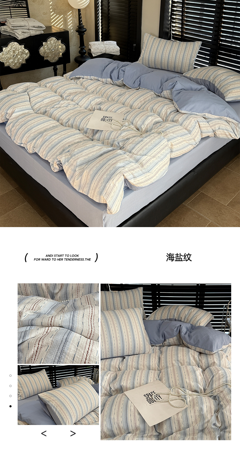 商品名称:美丽坊 2026新款韩系沐纱棉印花四件套 海盐纹