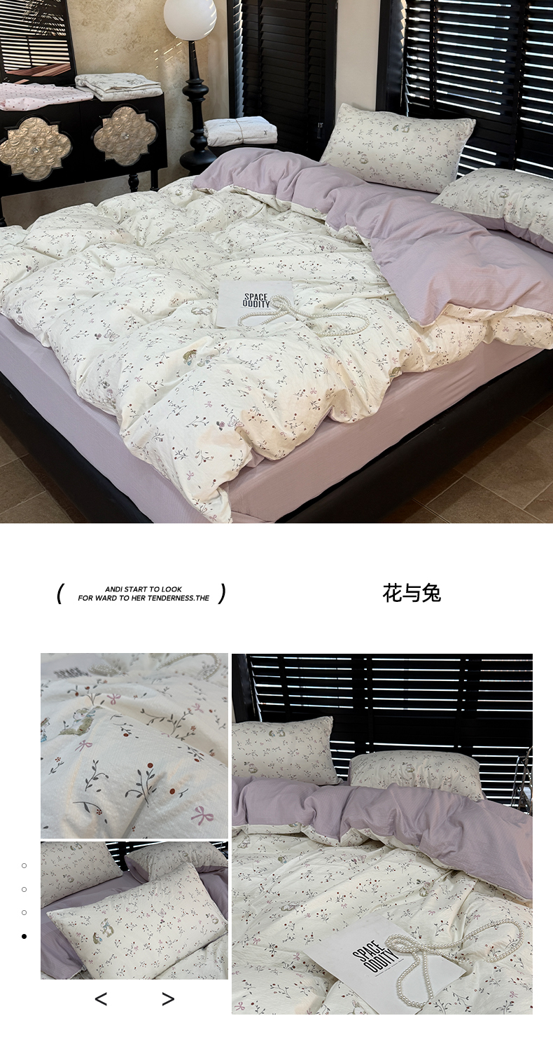 (总)美丽坊 2026新款跨境外贸爆款高支数高密度全棉纯棉四件套,晨间诗集,粉妆,暮紫流云,妮可兔,软萌萌,私藏浪漫,天真蓝,微风花园,星星木马,在林间,组合图仅供展示不可下单