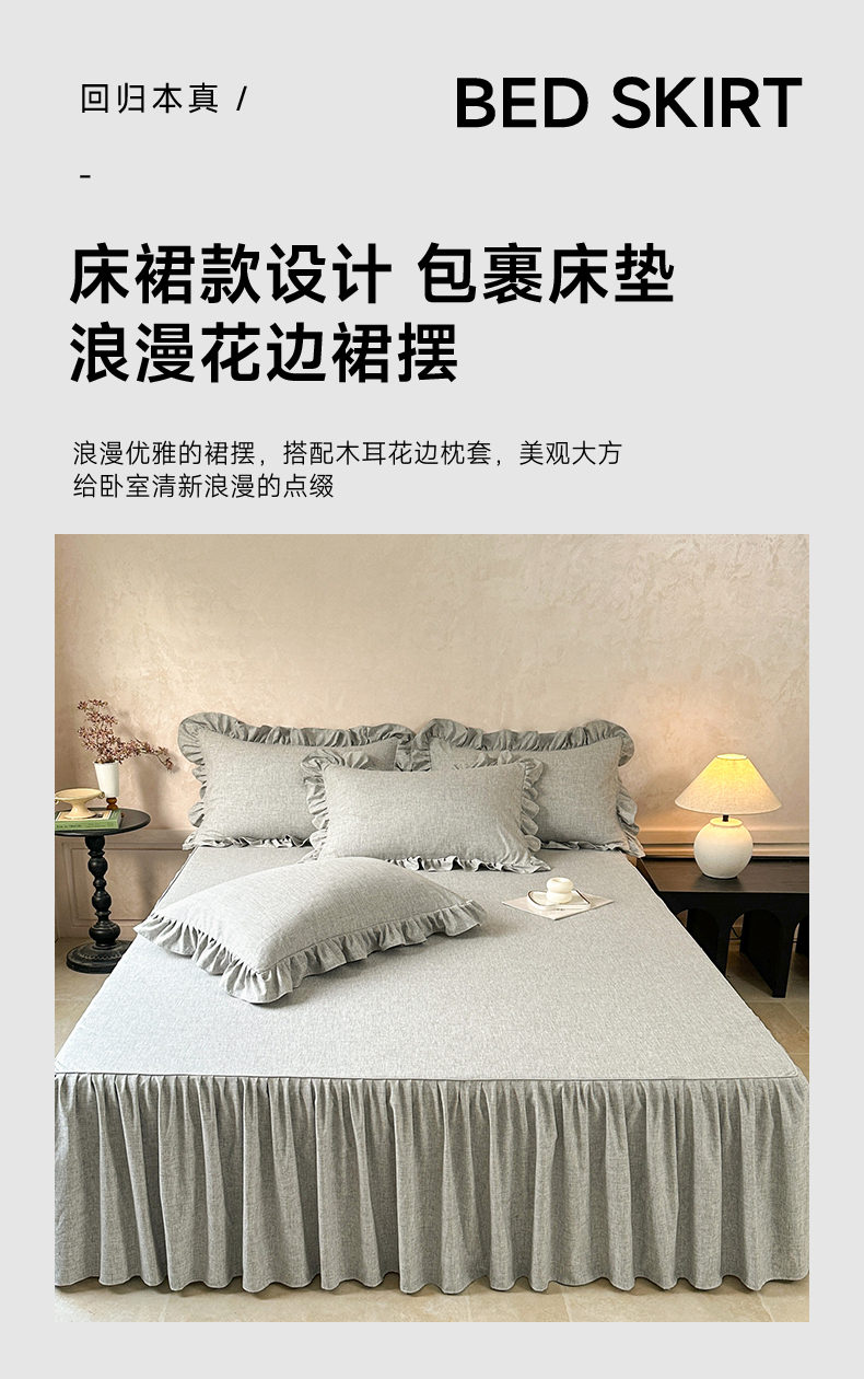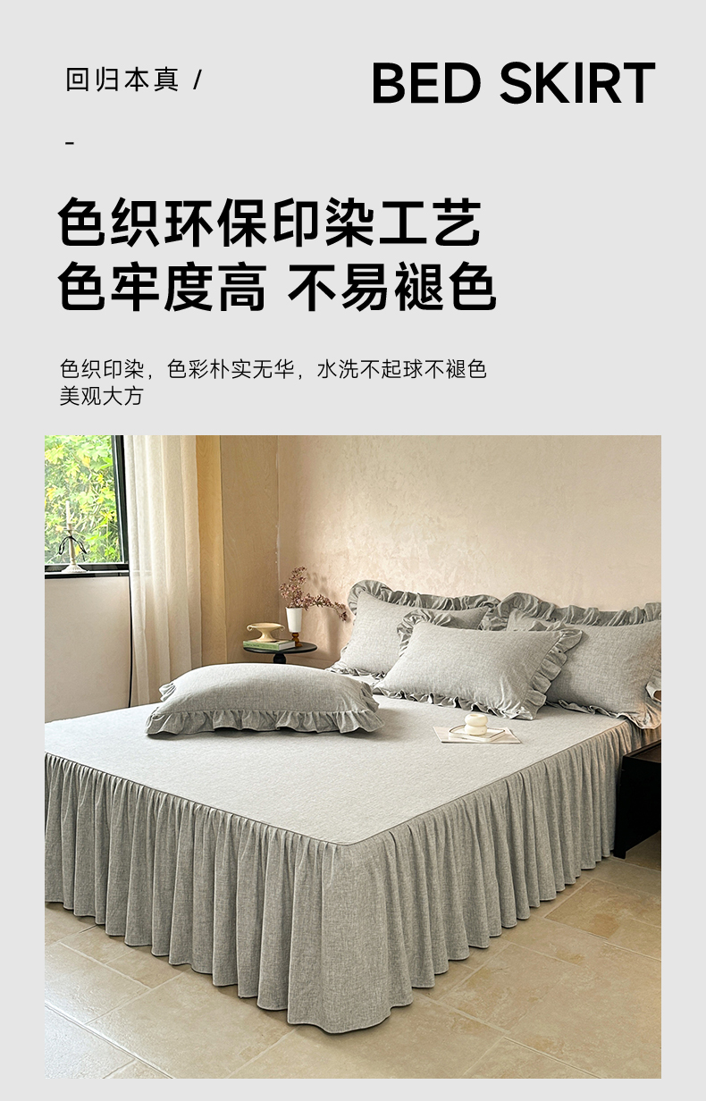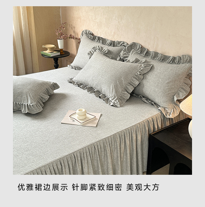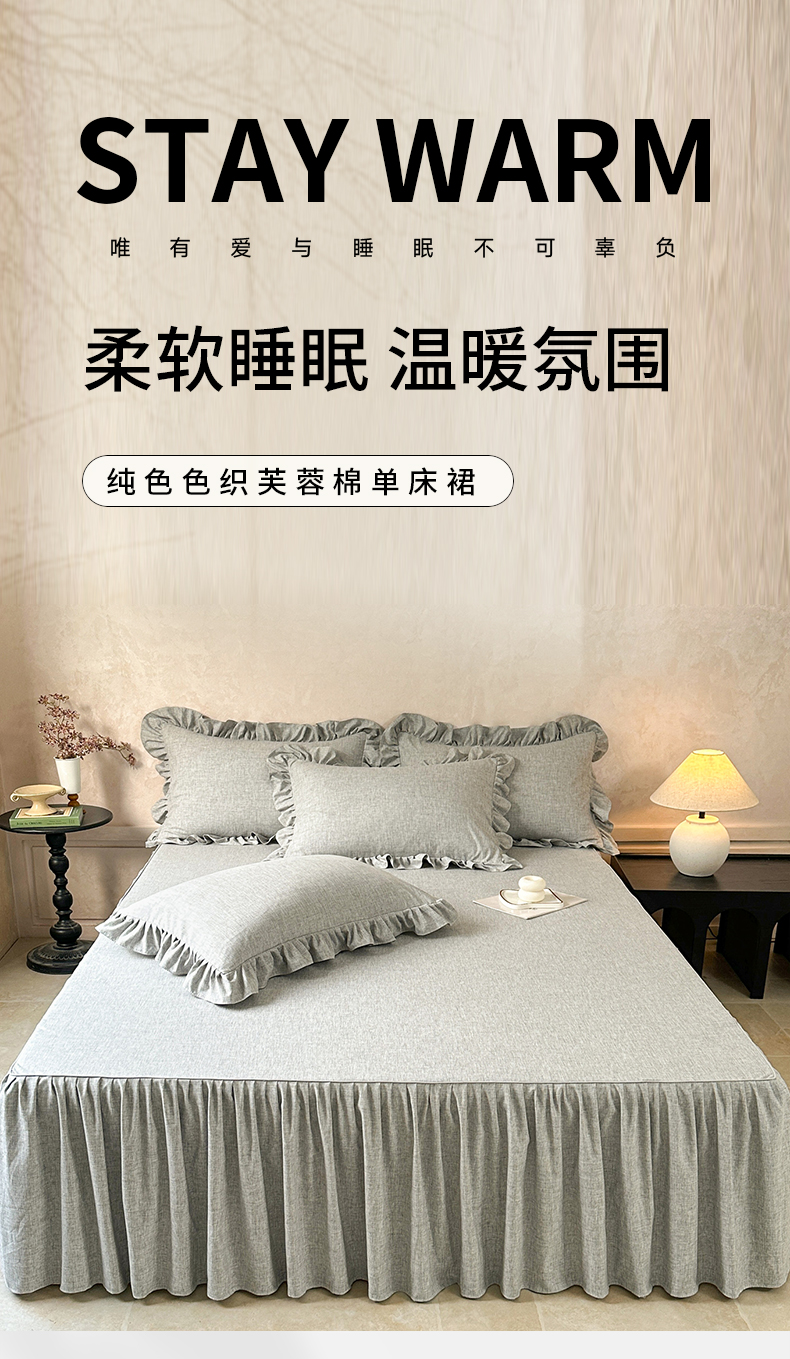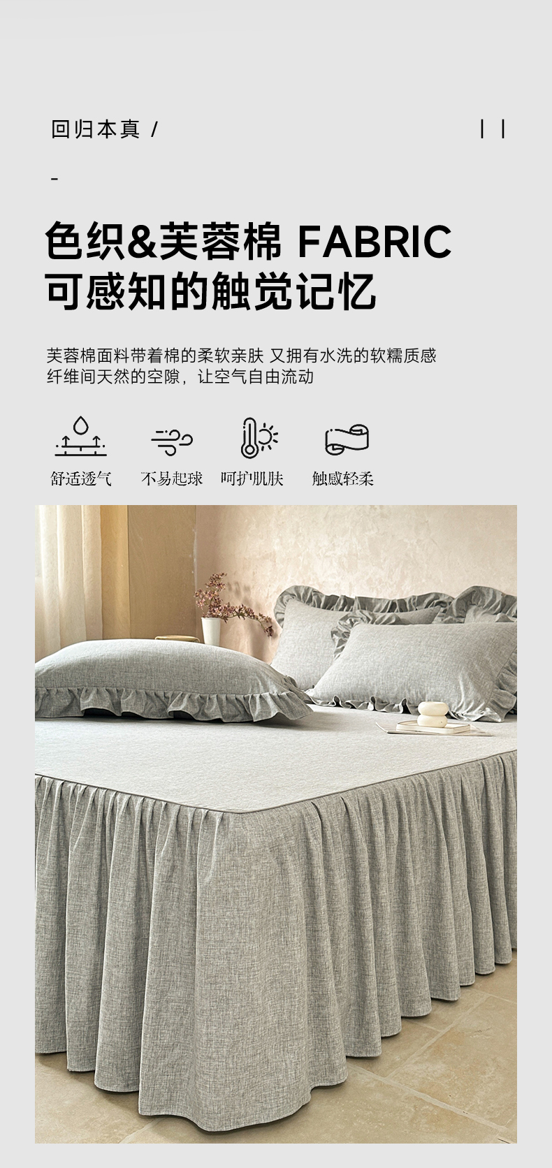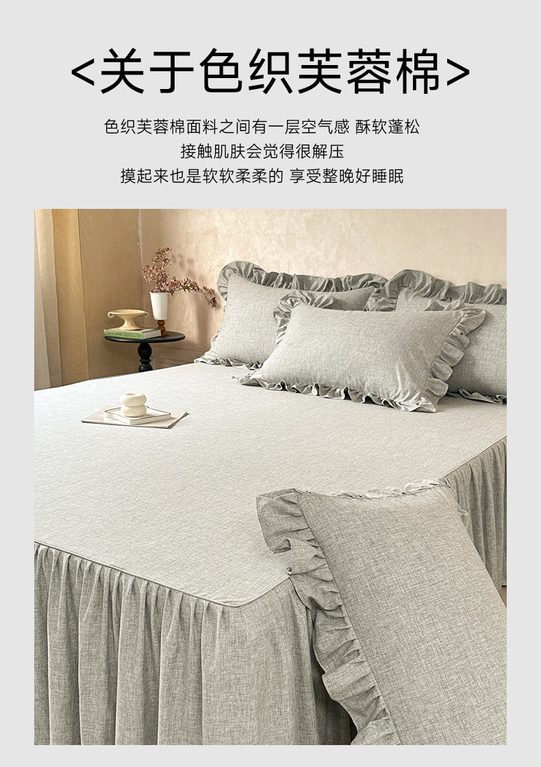 商品名称:忘忧草 2026新款纯色色织芙蓉棉单床裙-维密系列 维密-沉稳灰