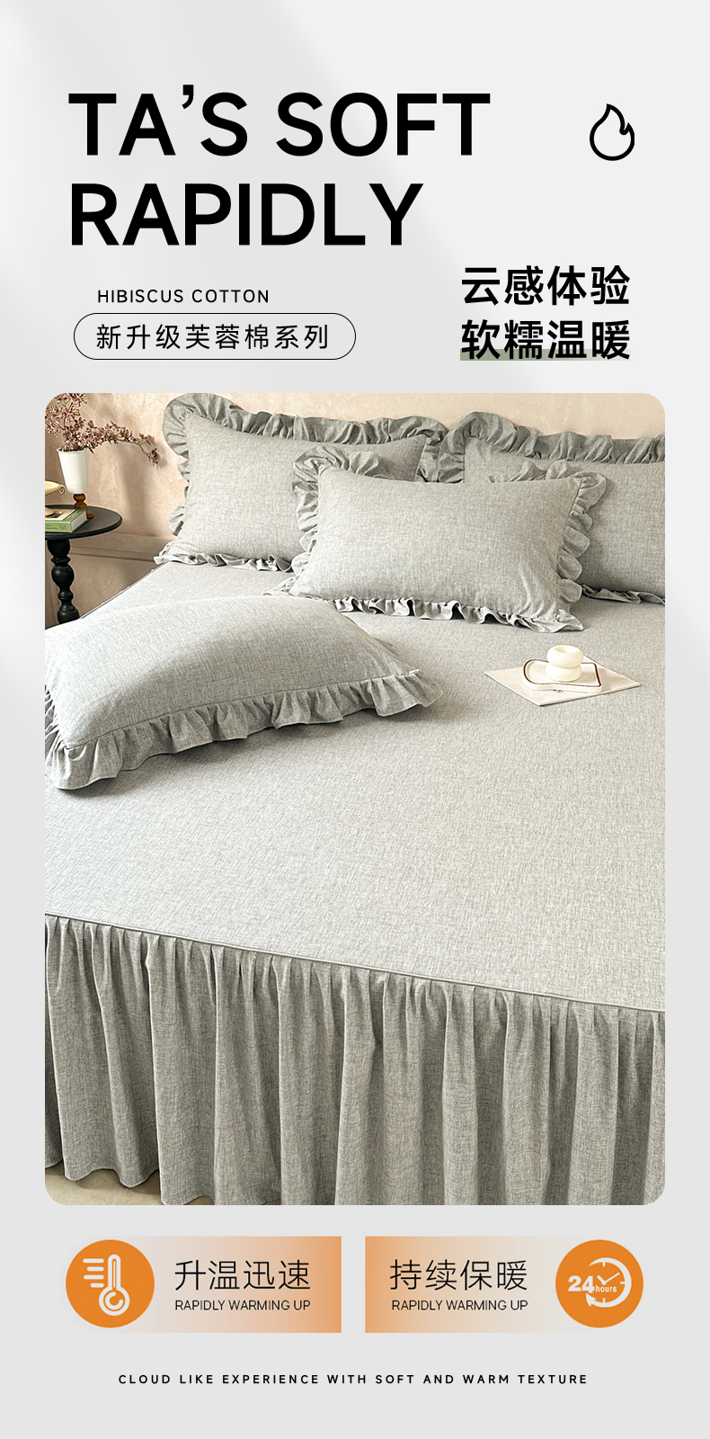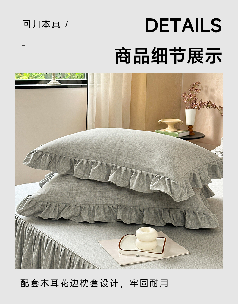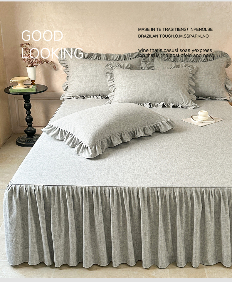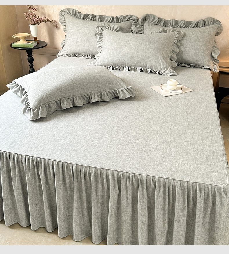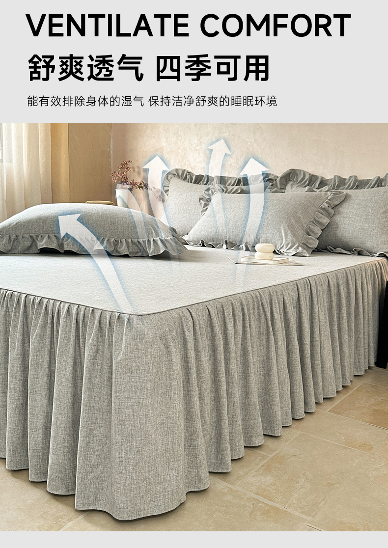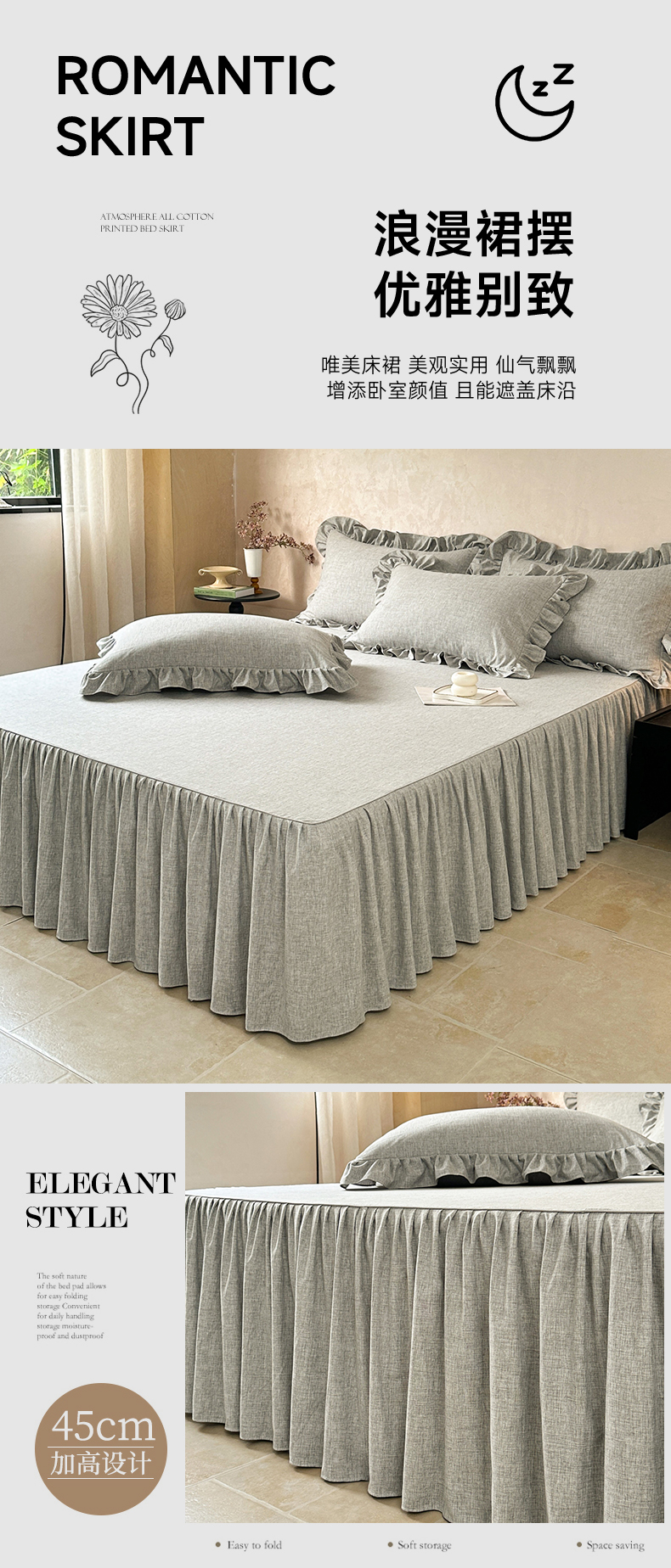 商品名称:忘忧草 2026新款纯色色织芙蓉棉单床裙-维密系列 维密-沉稳灰