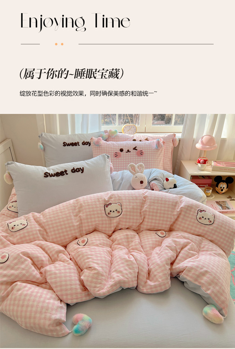 当前位置: 91家纺网 > 商品网购 > 床品套件 > 四件套 > 全棉普通四件套 > 丽涵家纺 2026新款全棉色织水洗棉毛巾绣四件套-甜心小猫 甜心小猫-粉黄-毛球款