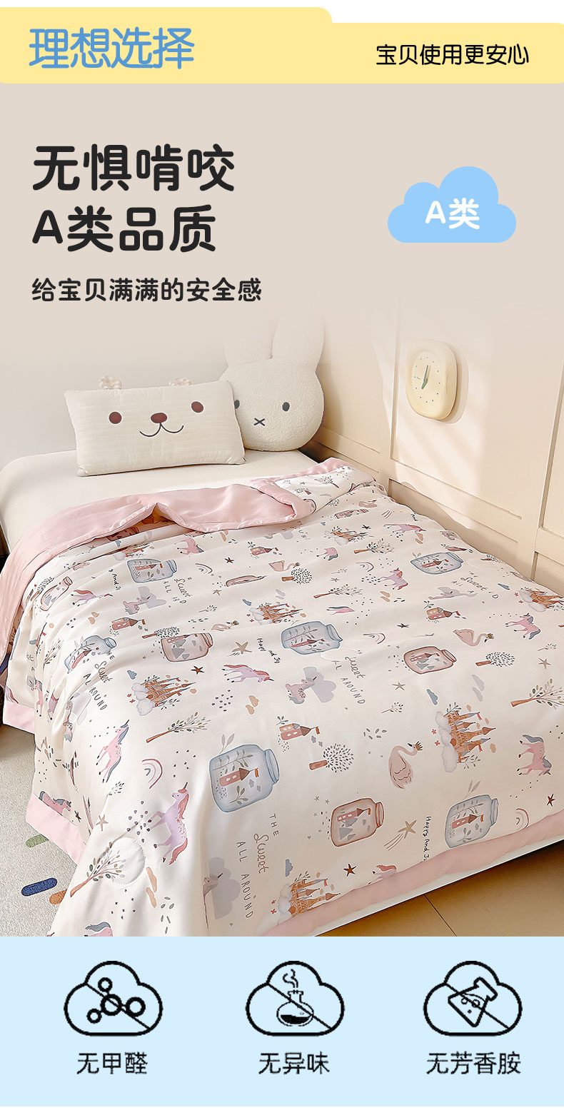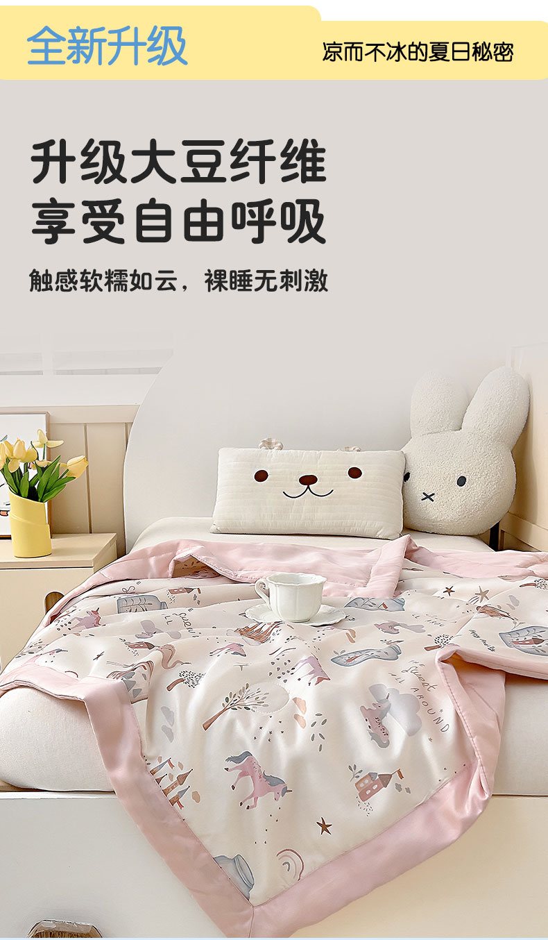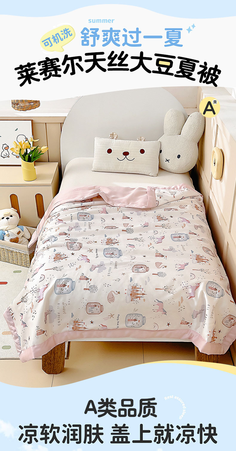 商品名称:御棉坊 2026春夏A类天丝活性印染儿童大豆夏被宝宝夏凉被幼儿园午睡空调被薄被子 元气粉世界