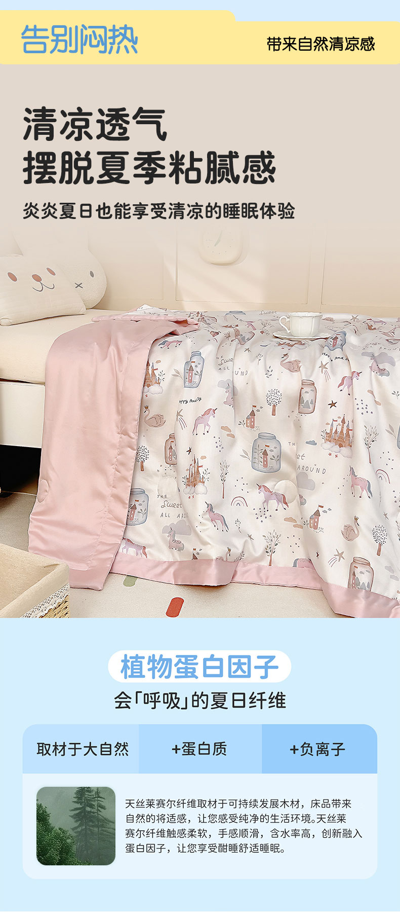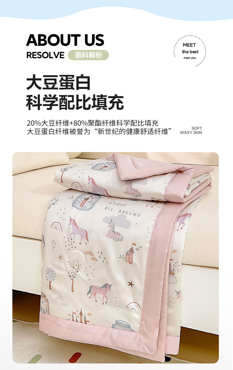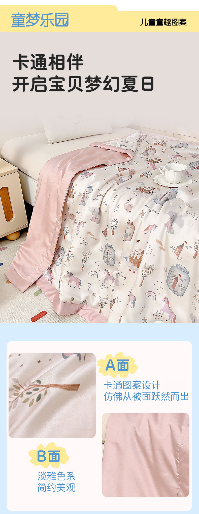 商品名称:御棉坊 2026春夏A类天丝活性印染儿童大豆夏被宝宝夏凉被幼儿园午睡空调被薄被子 元气粉世界