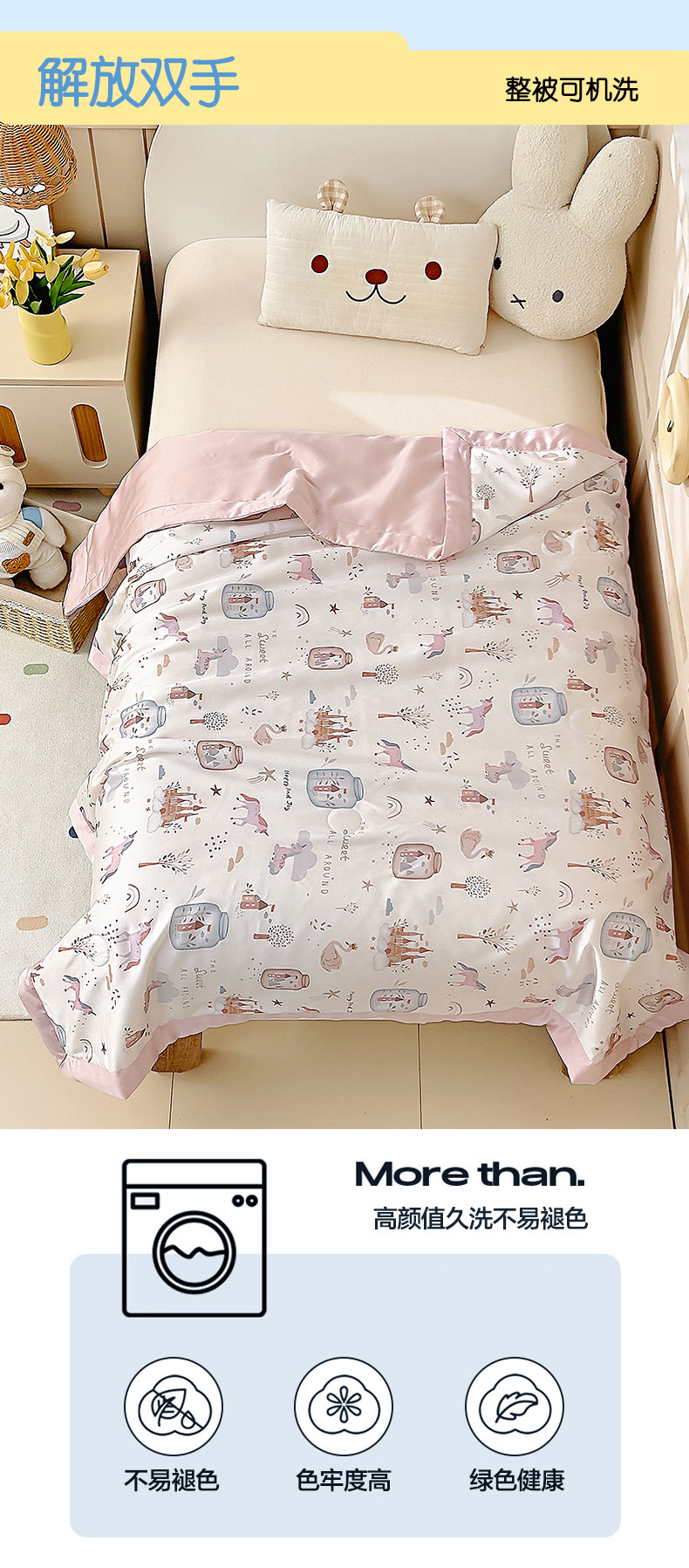 (总)御棉坊 御棉坊2026萌趣A类凉感幼儿园夏凉被宝宝午睡薄被子儿童空调被夏被,组合图仅做展示不可下单,多多熊,乖乖兔,萌萌派,木马乐园-粉,木马乐园-米,皮皮怪,三小只