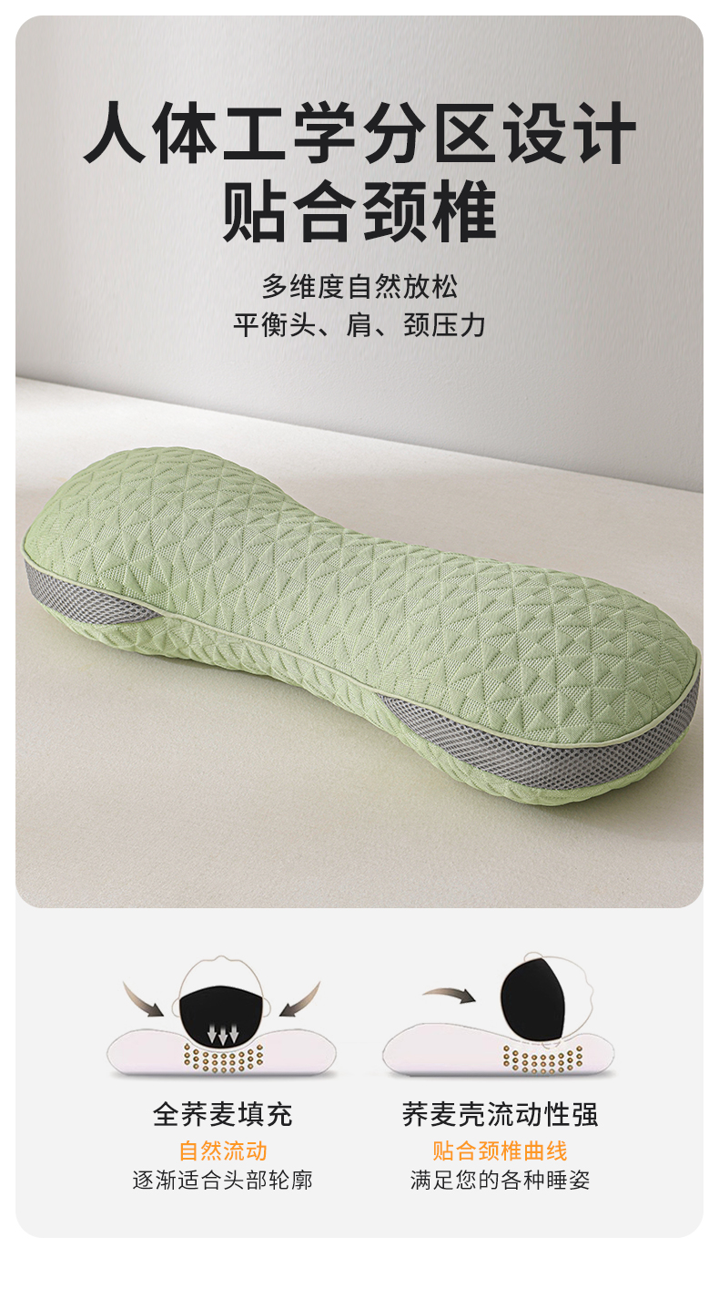 商品名称:小桃姐家纺 2025新款凉感冰丝苦荞骨形护颈枕 枕头枕芯 凉感冰丝苦荞骨形护颈枕-灰色