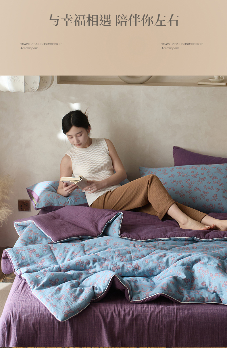 当前位置: 91家纺网 > 商品网购 > 被子 > 夏被 > 春皖家纺 2026新款全棉双层提花夏被四件套 花漾兰
