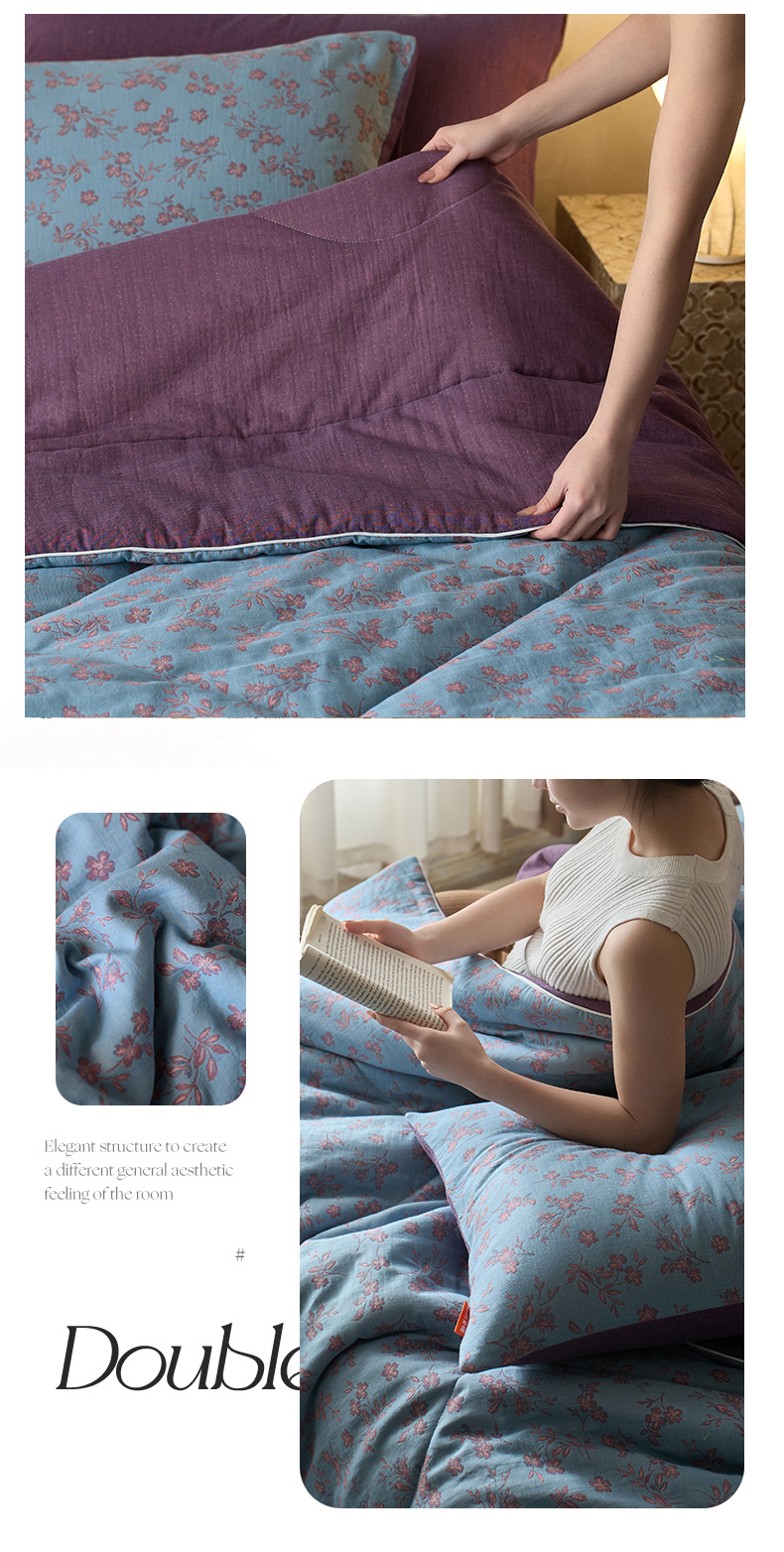 春皖家纺 2026新款全棉双层提花夏被四件套 花漾兰