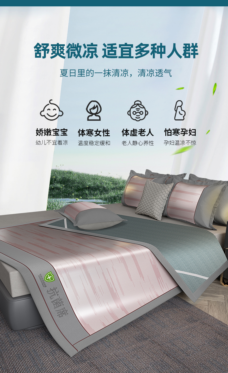 (总)2023新款超精密冰丝席-小斜纹系列-床笠款藤席凉席竹席,粉色,蓝色,绿色,银灰