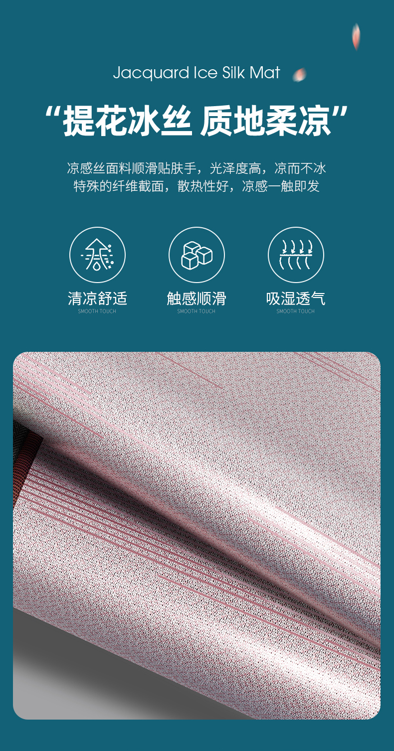 商品名称:小牛席业 2026新款A加厚款-可机洗抗菌提花冰丝席 抗菌席-色织咖色