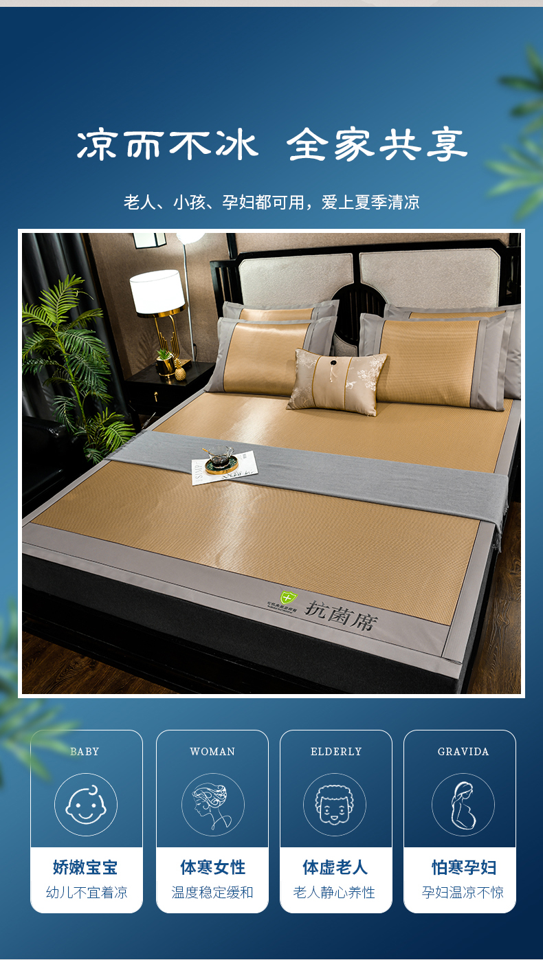 2023新款夏日冰点-冰藤双面席凉席藤席竹席冰丝席乳胶席,咖色,蓝色,绿色,香槟