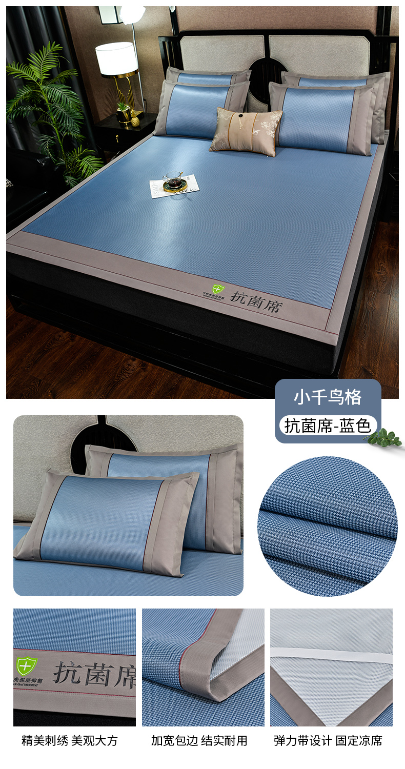 (总)2023新款超精密冰丝席-小斜纹系列-床笠款藤席凉席竹席,粉色,蓝色,绿色,银灰