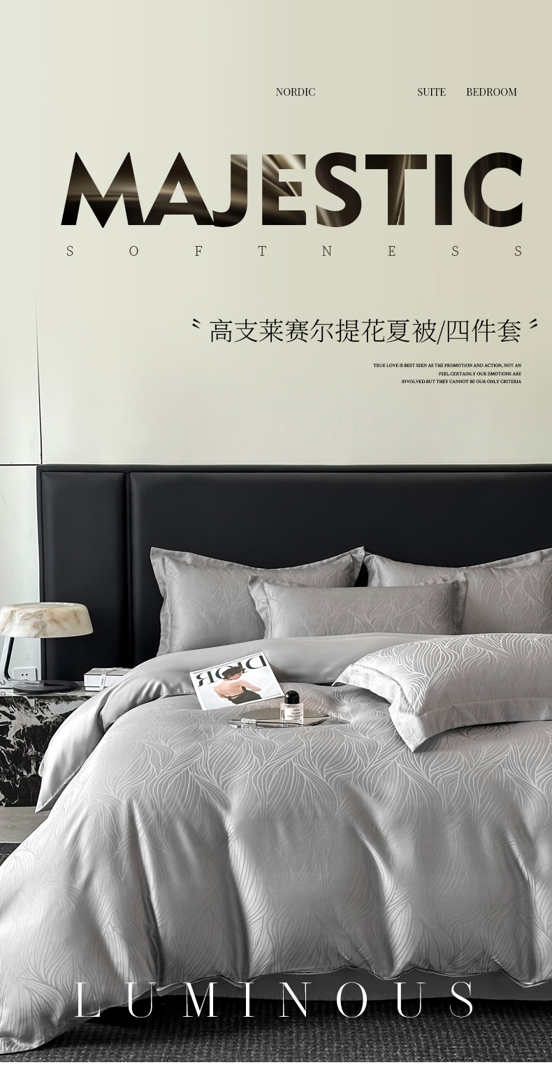 当前位置: 91家纺网 > 商品网购 > 床品套件 > 四件套 > 莱赛尔四件套 > 慕晨 2026新款莱赛尔提花四件套高级简奢款天丝夏被四件套直播热款 佩吉拉