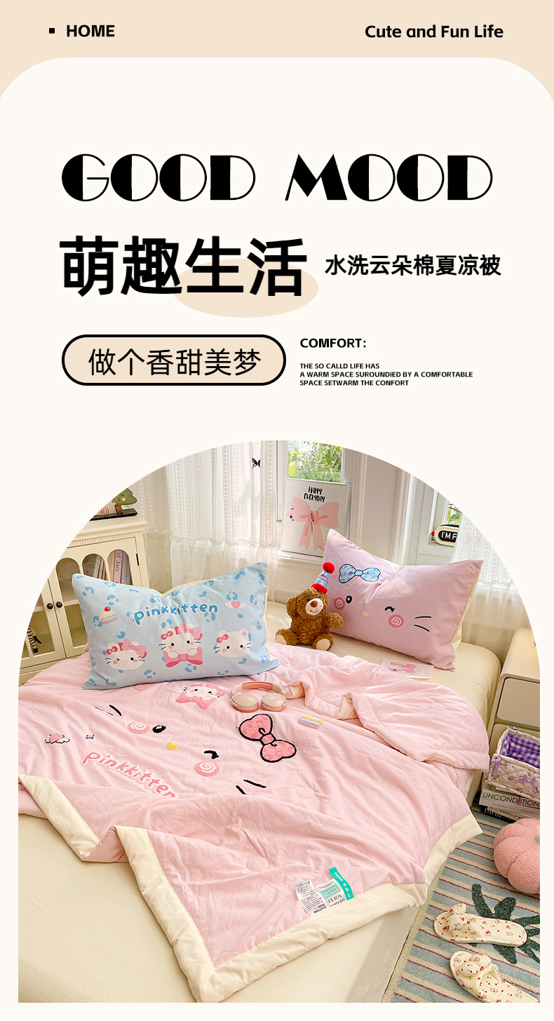 商品名称:(总)康纳利 2026新款加厚水洗云朵棉大版毛巾绣夏凉被空调被印花卡通夏被四件套