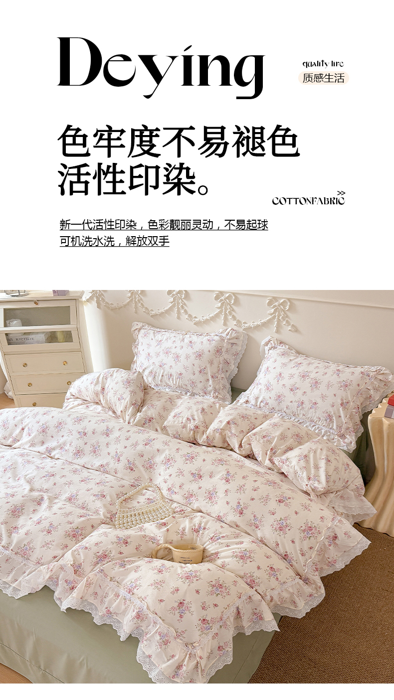 (总)吾欢心 2025新款小香风可可小姐系列花边四件套,可可奶茶绿,可可奶昔粉,可可柠檬黄,可可温柔紫,可可樱桃粉