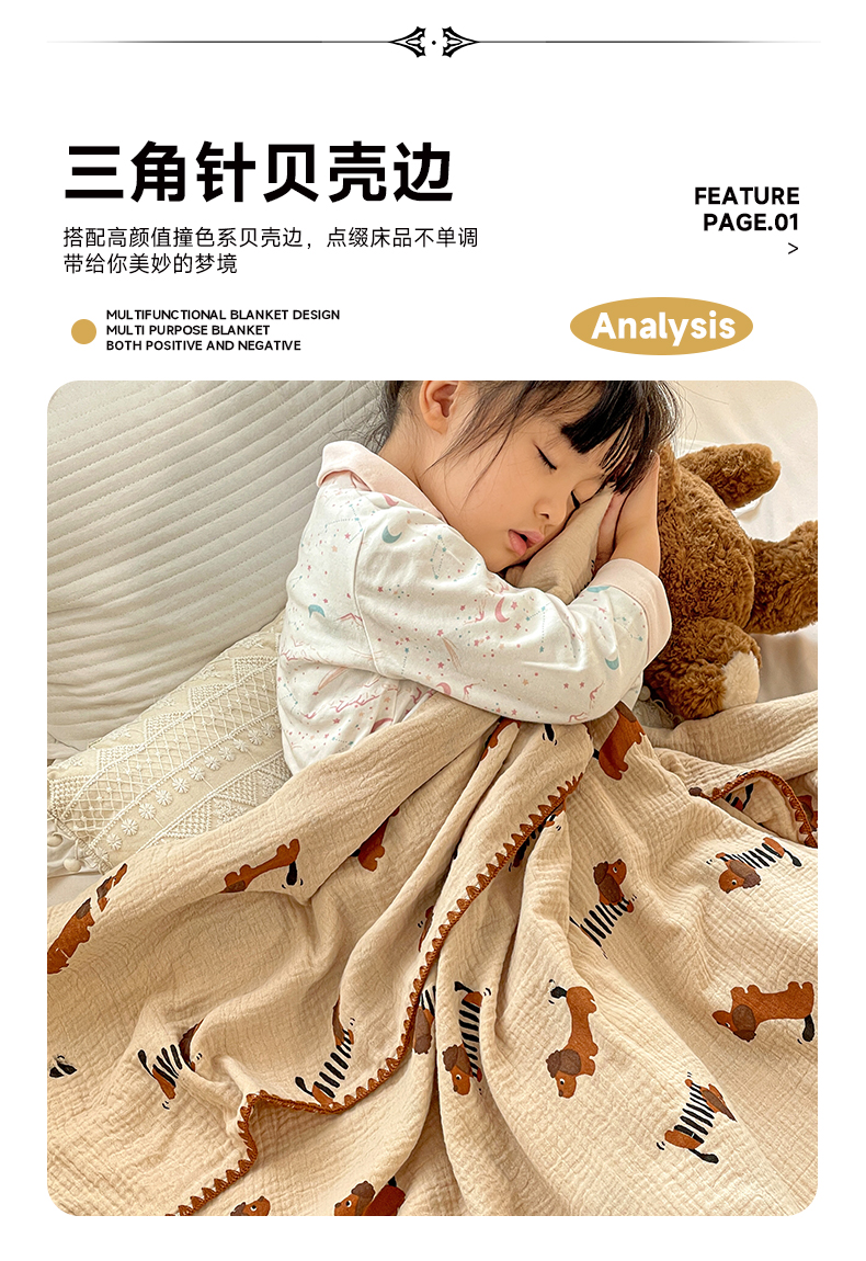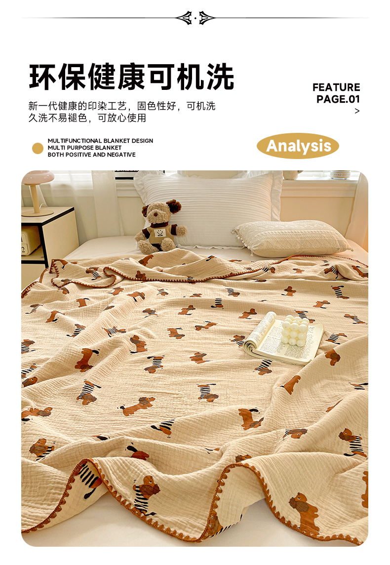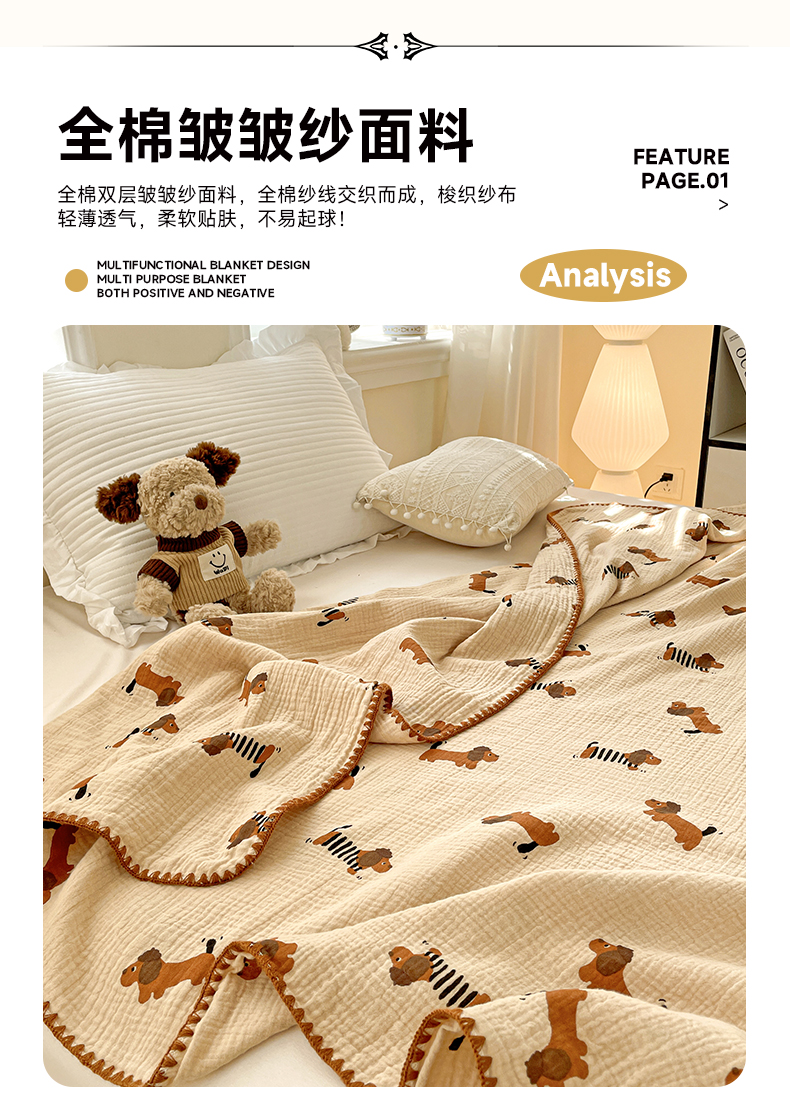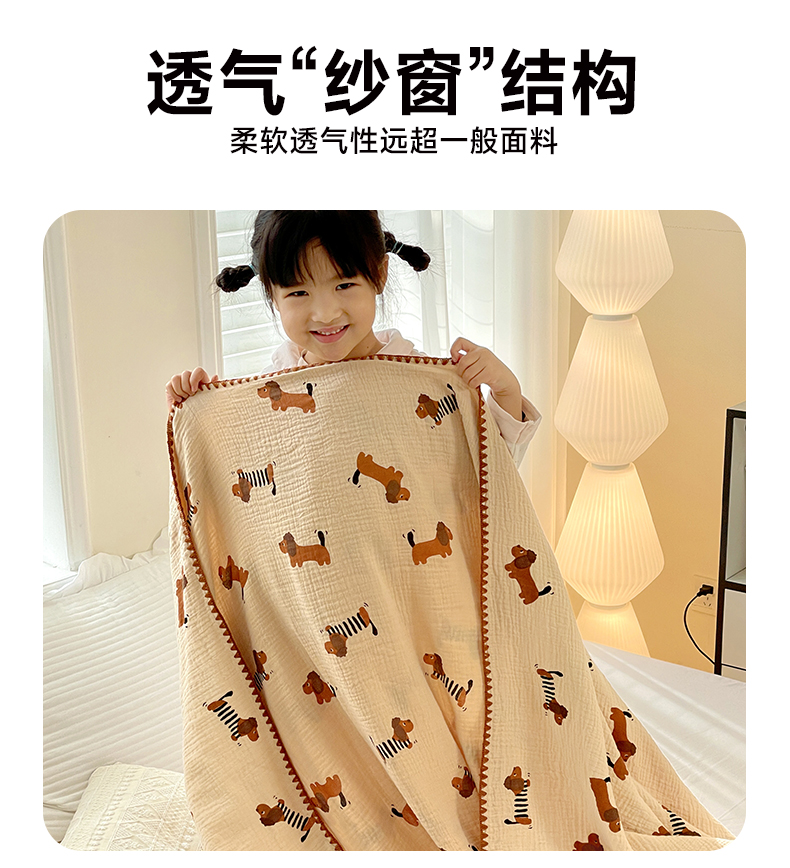 商品名称:优被业 2026新款A类全棉双层纱布毯夏被毯盖毯婴儿包被 腊肠狗