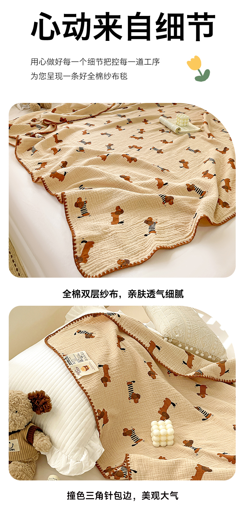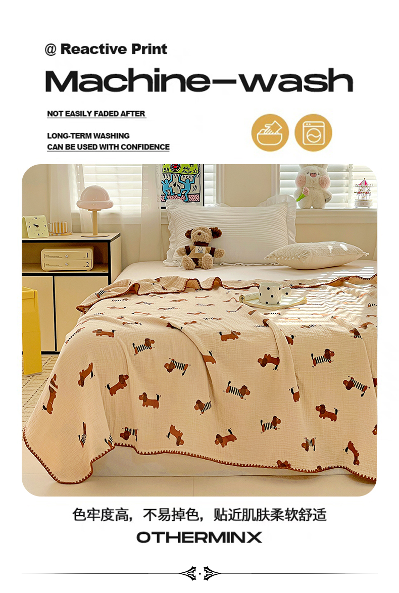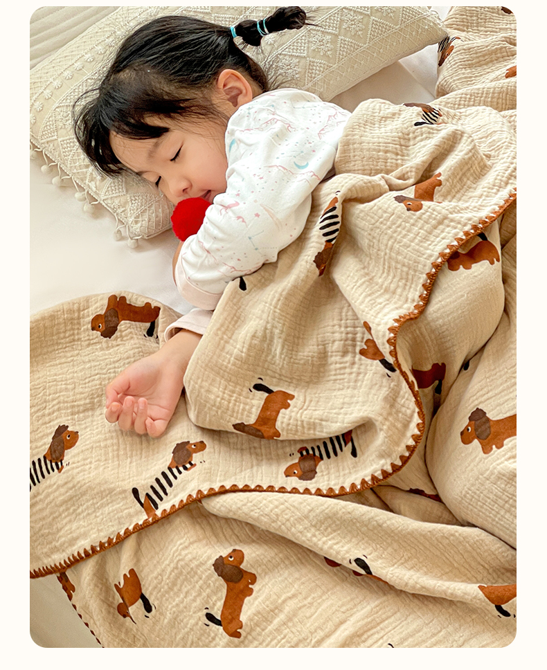 优被业 2026新款A类全棉双层纱布毯夏被毯盖毯婴儿包被 腊肠狗