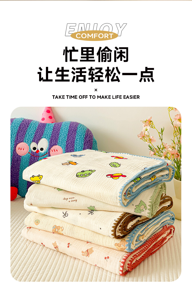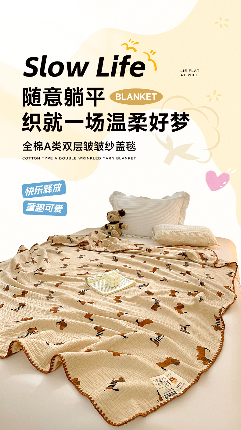 (总)优被业 2025新款全棉双层纱皱皱纱夏被,南瓜熊猫,宠物乐园,小爱心,爱心熊,花语,花馨,蘑菇小兔