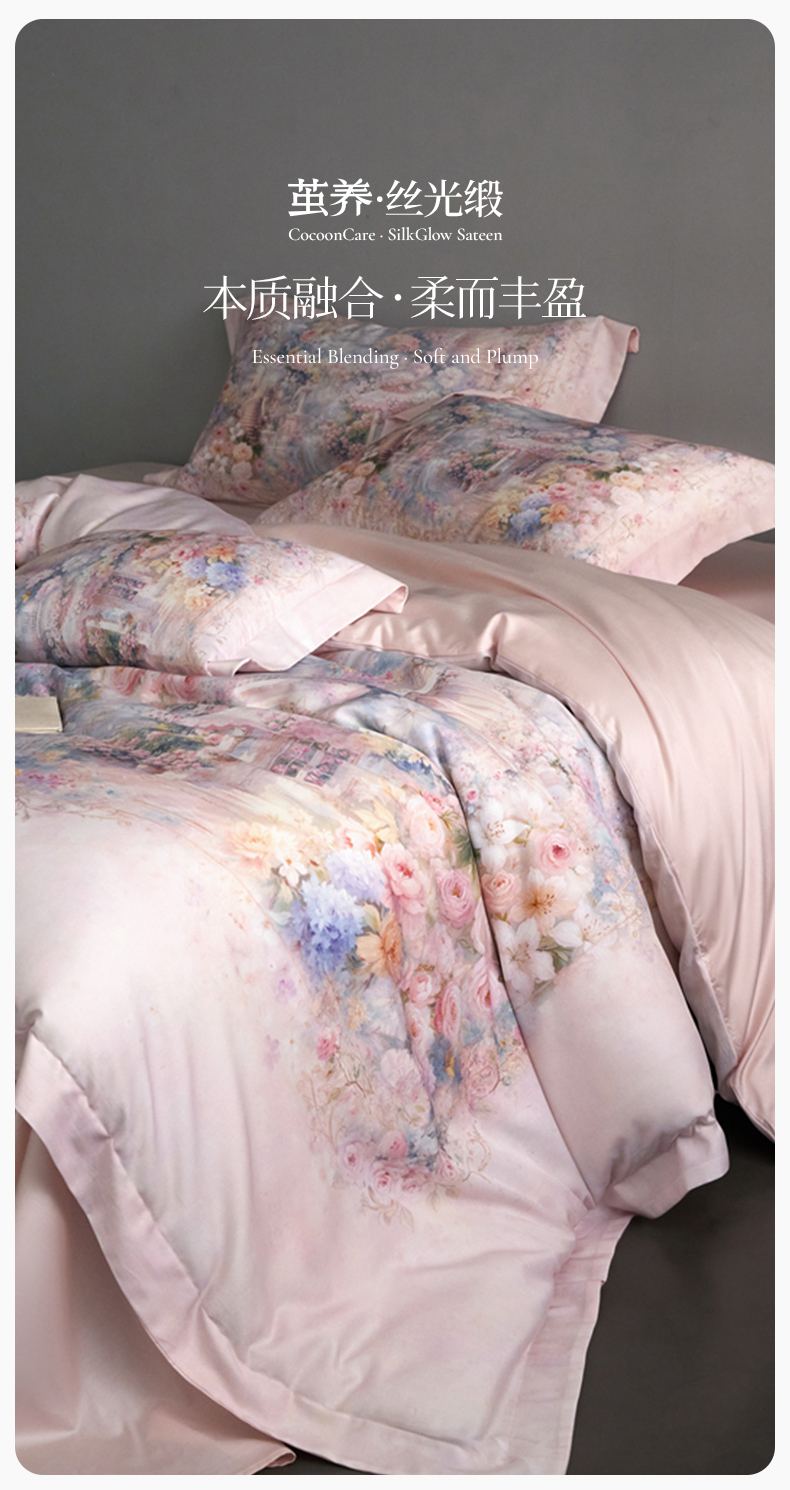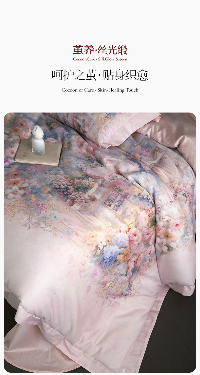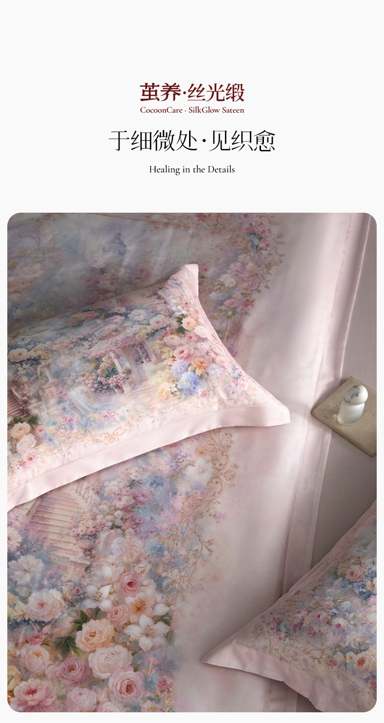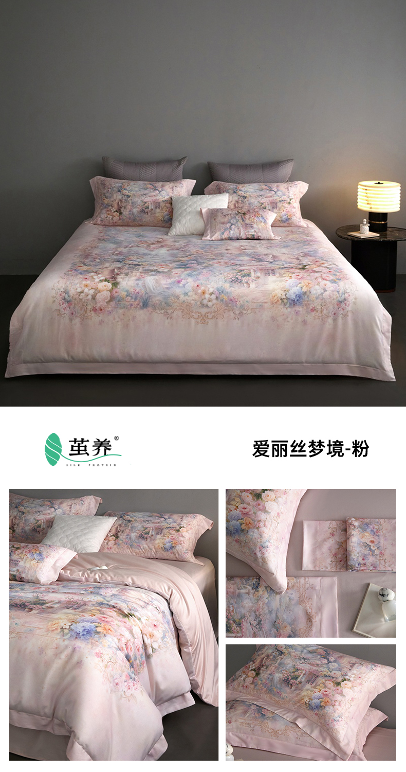 金奇达家纺 2026新款【茧养·丝光缎】四件套-柏林花事【(会员减40元)标准号全网控价(折后券后)不低于299元】 爱丽丝梦境-粉