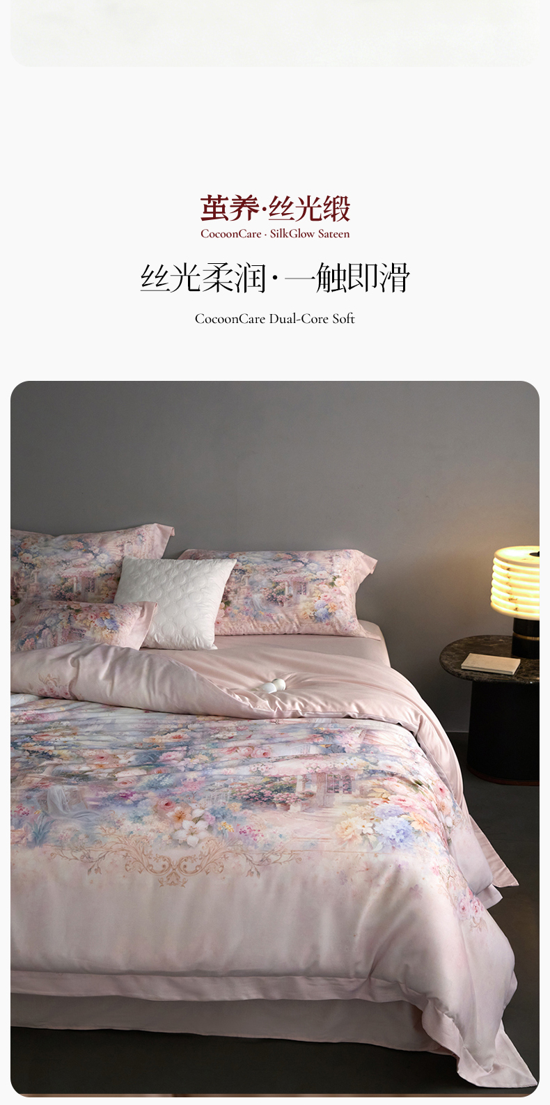 (总)金奇达家纺 2026新款茧养丝光缎四件套-蕾丝小姐(标准号全网控价(折后券后)不低于299元),蕾丝小姐-粉玉,蕾丝小姐-莲紫,蕾丝小姐-蔷薇,蕾丝小姐-山茶,蕾丝小姐-烟霞,蕾丝小姐-云纱