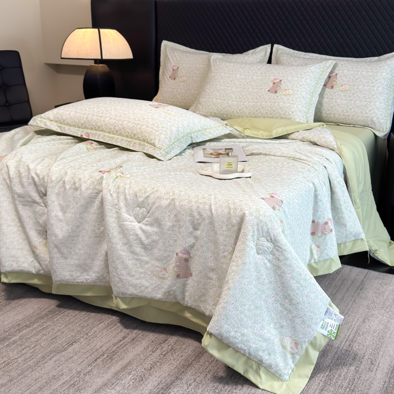 (总)赛丽雅 2026新款拼角轻奢冰丝凉感夏被四件套,安妮,安睡熊-粉,安睡熊-绿,花束,花田兔-粉,莫奈花园-灰,苏梨,摇摇马,云兮,悸动,曼迪,倾城,热带雨林,赛雅-粉,赛雅-绿,雅婷