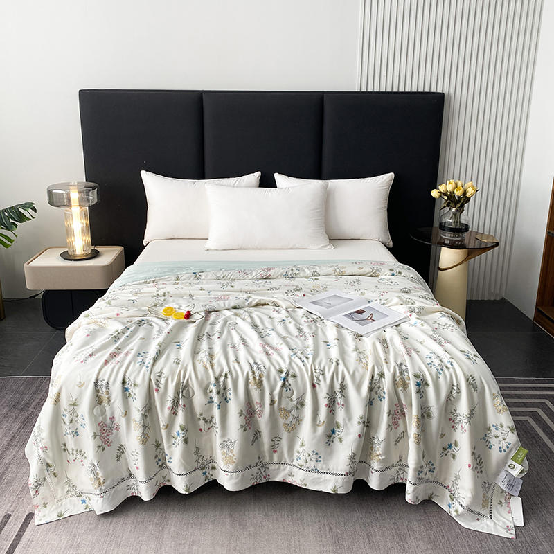 商品名称:太阳羽家纺 2026新款铂金莱赛尔天丝印花夏凉被镂空花边空调被夏被 玲珑叶