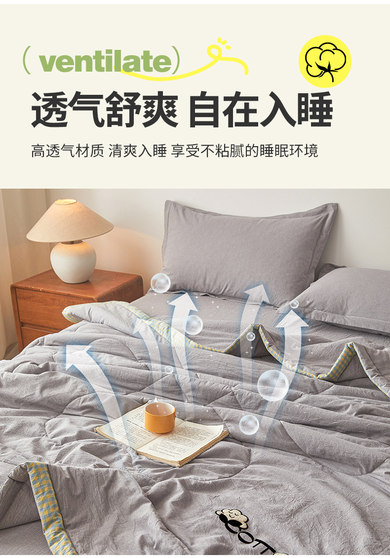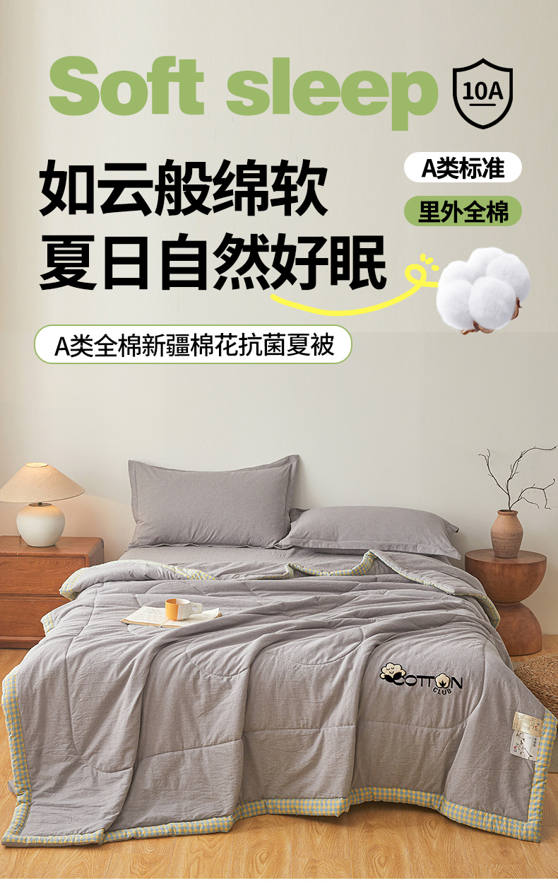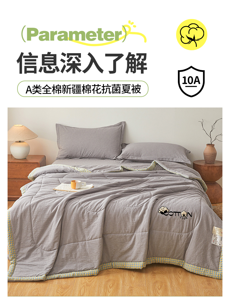 商品名称:2026新款A类里外全棉夏凉被100%新疆棉纯棉全棉填充烫画款空调被夏被 全棉烫画-月光灰