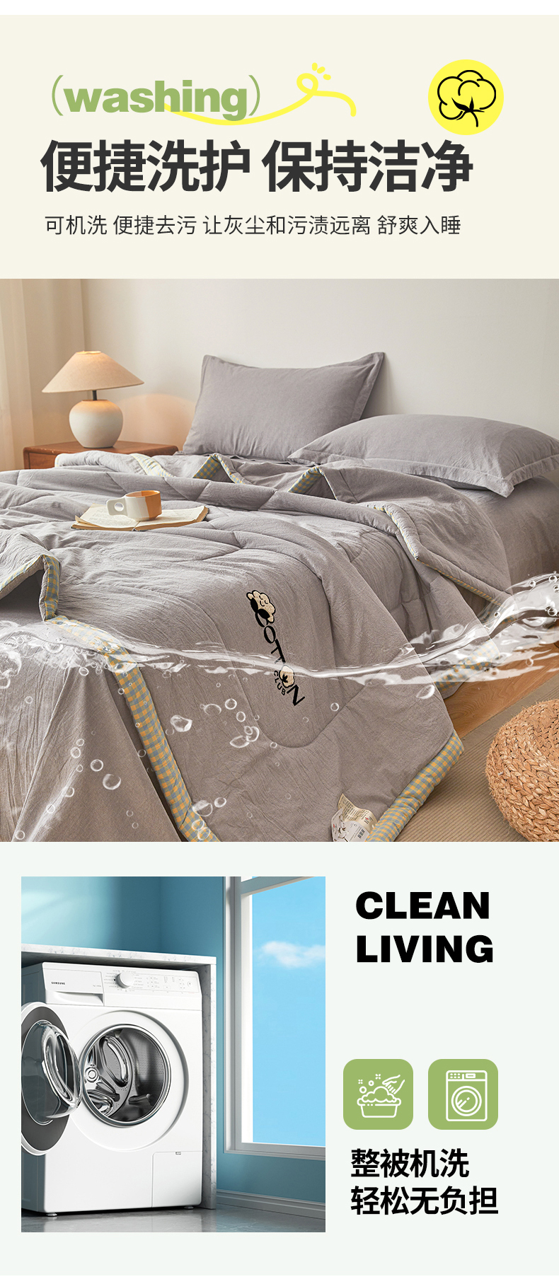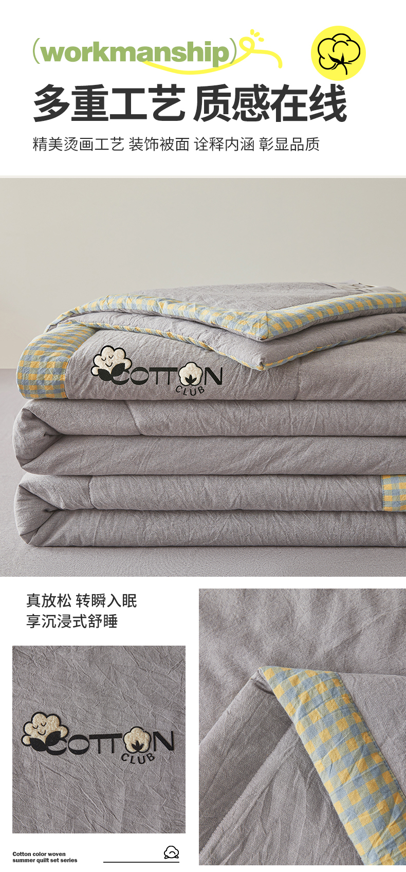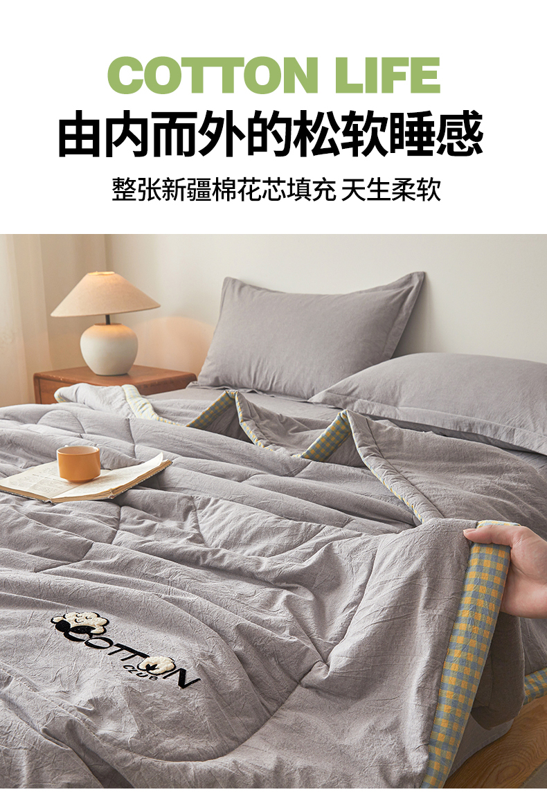 (总)西域种棉人 2026新款A类新疆棉花夏凉被加宽包边水洗棉无印格子印花吸湿透气棉花夏被空调被,格子灰,格子蓝,格子熊,格子紫,小格灰,小格绿