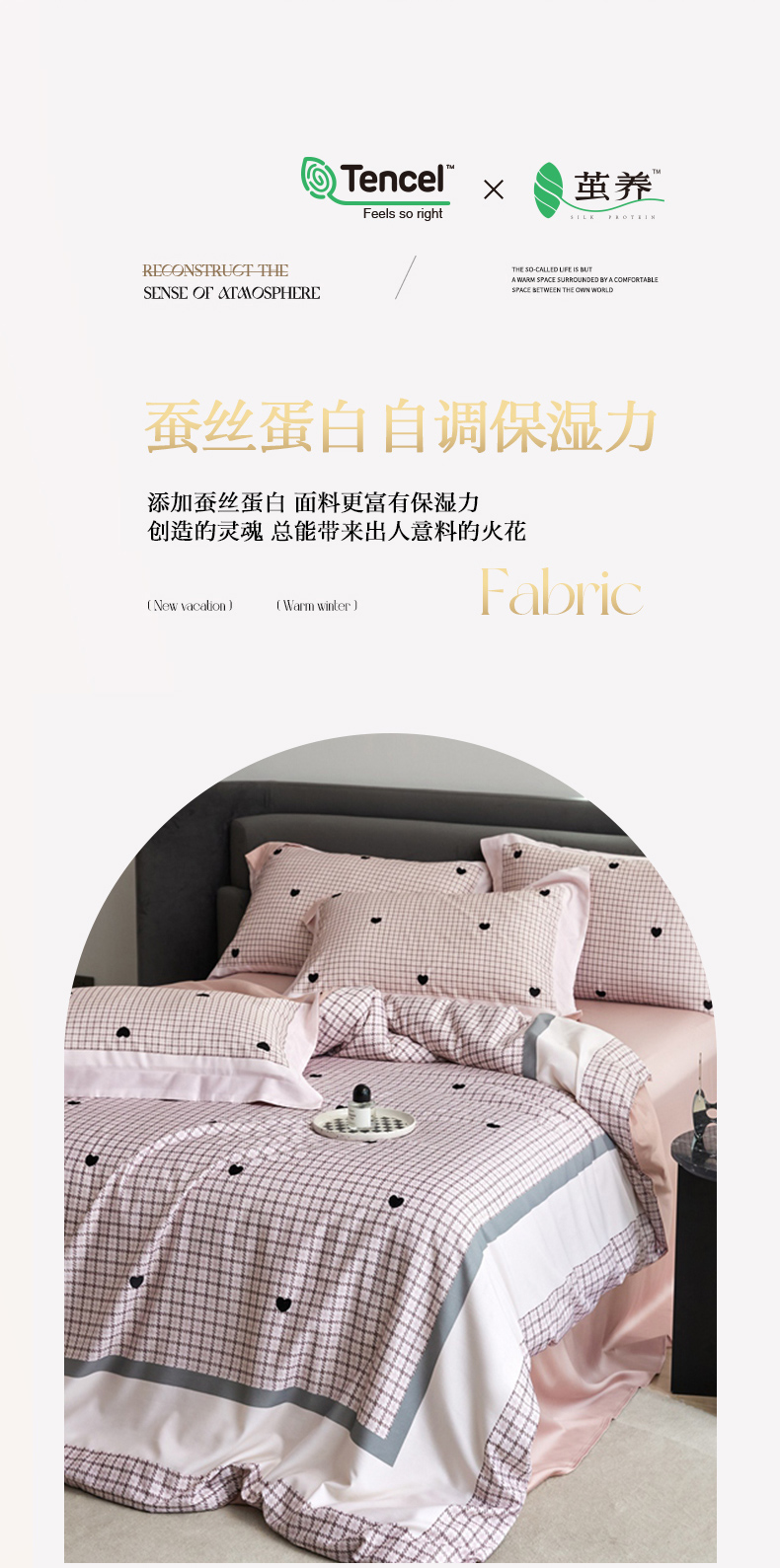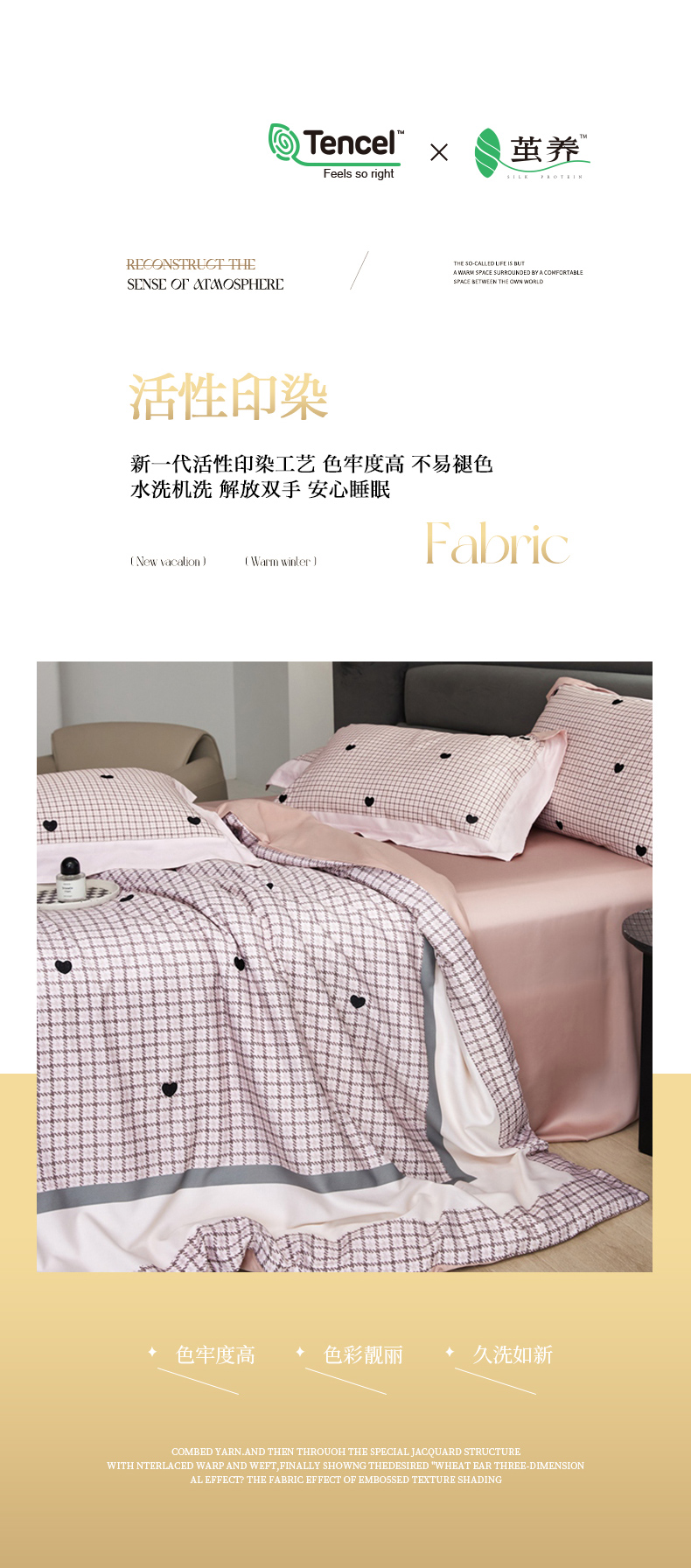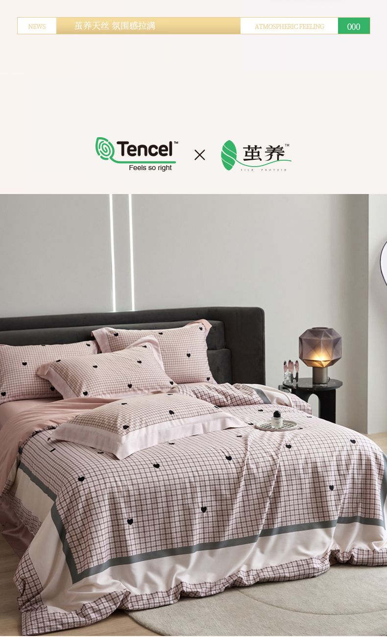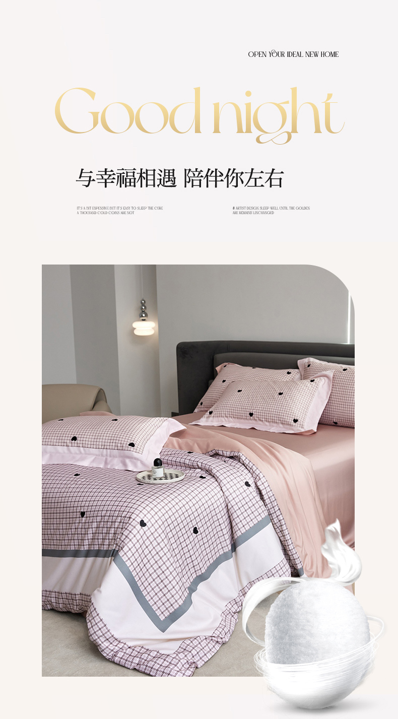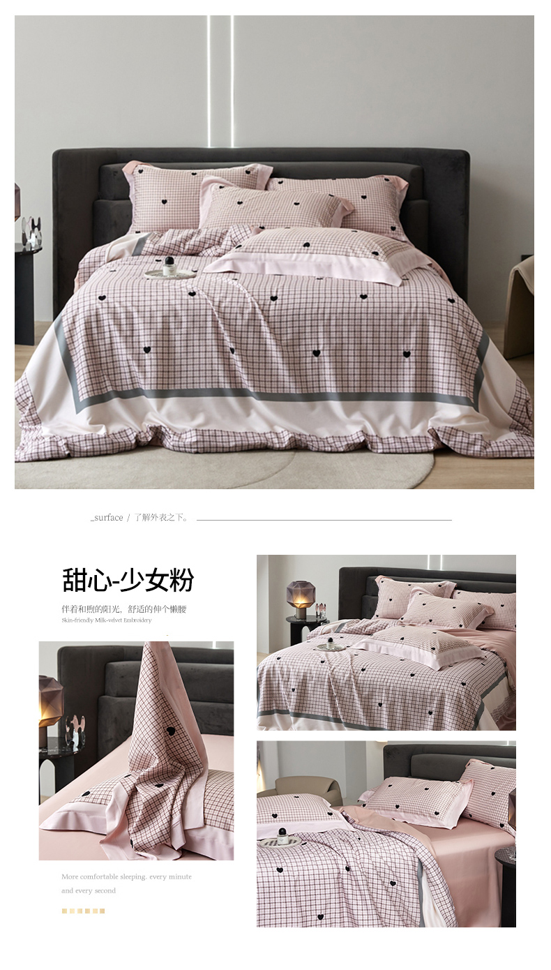 商品名称:金奇达家纺 2026新款茧养天丝棉四件套-甜心 甜心-少女粉