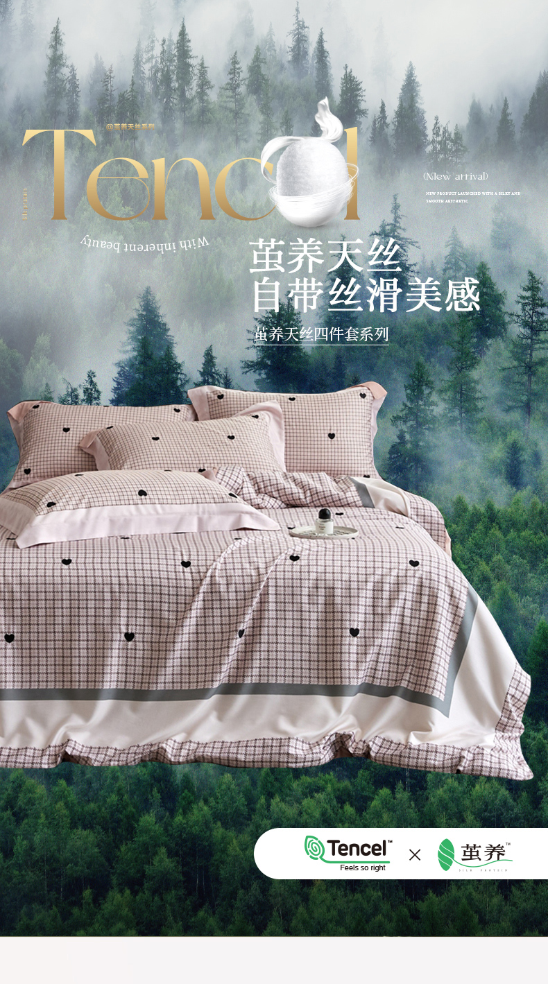 (总)金奇达家纺 2026新款茧养天丝棉四件套-【美罗拉】(标准号全网控价(折后券后)不低于 258元),斑尼灰,碧玉绿,南汐