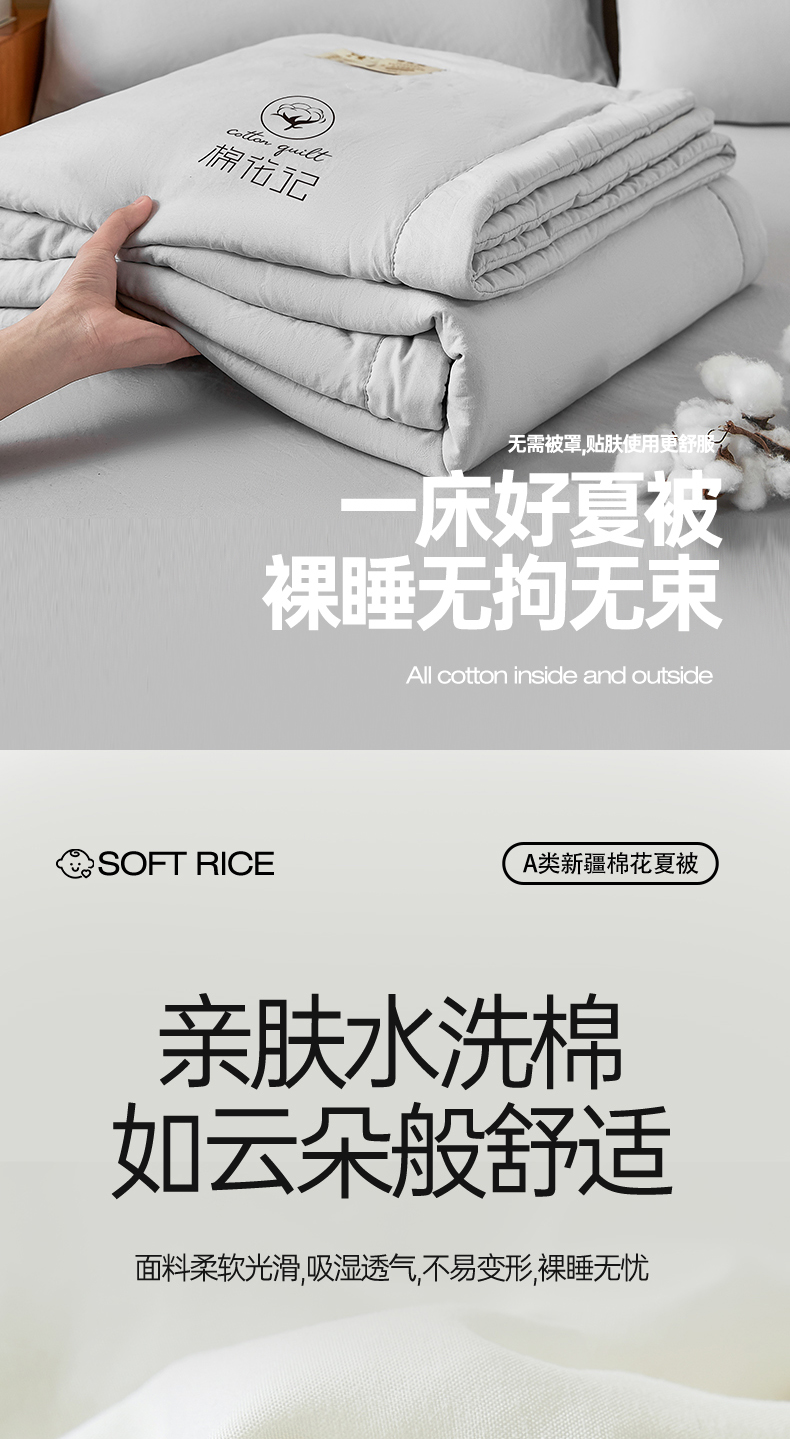 爱屋及屋 2026新款撞色双拼新疆棉花夏被空调被夏凉被 单拼-浅灰