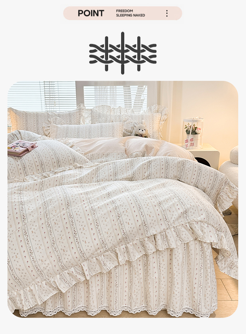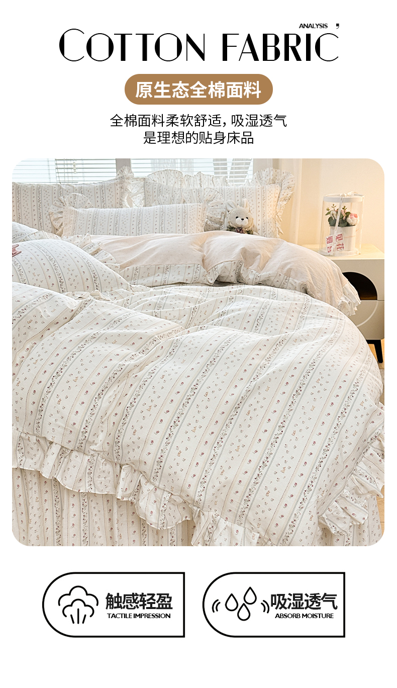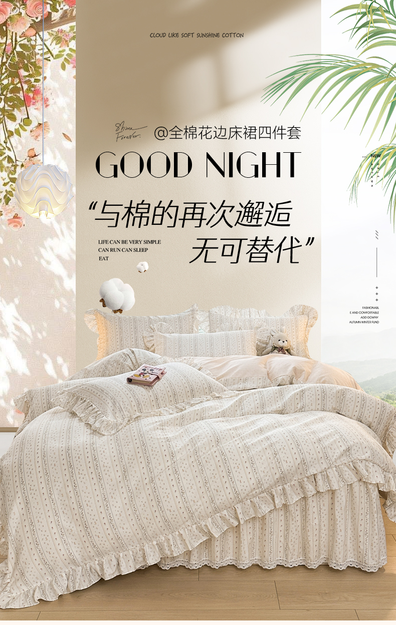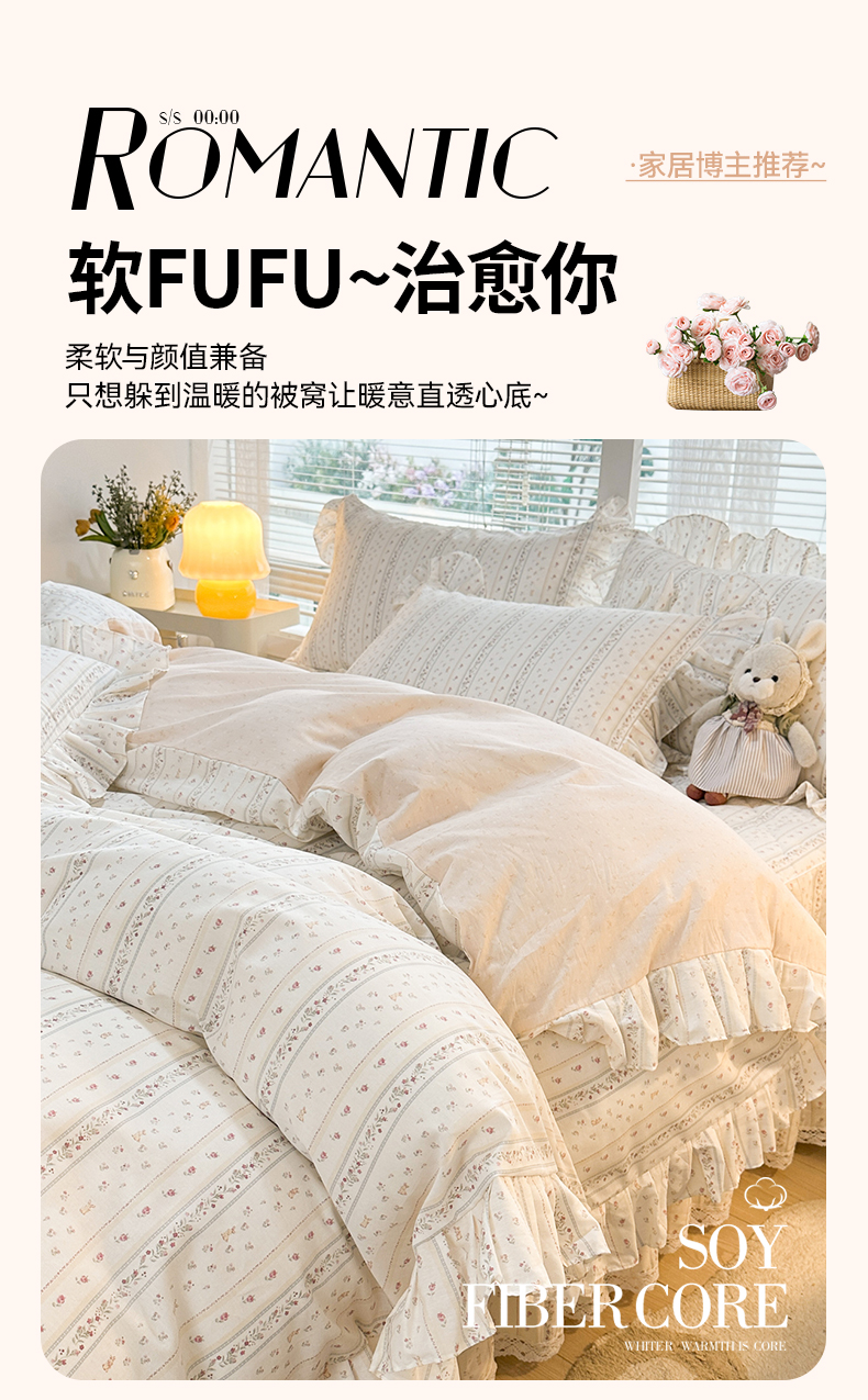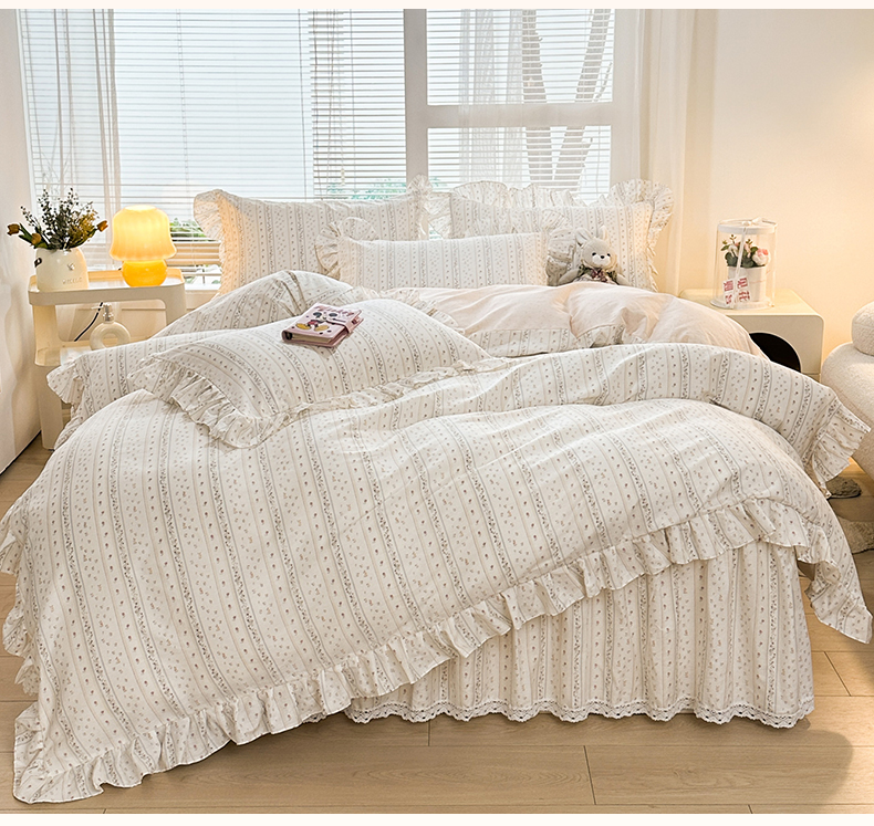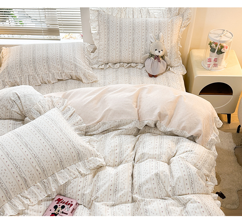 当前位置: 91家纺网 > 商品网购 > 床品套件 > 四件套 > 全棉普通四件套 > 忘忧草 2026新款全棉夹棉印花床裙四件套单被套 蔷薇花影