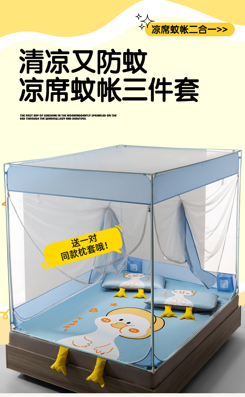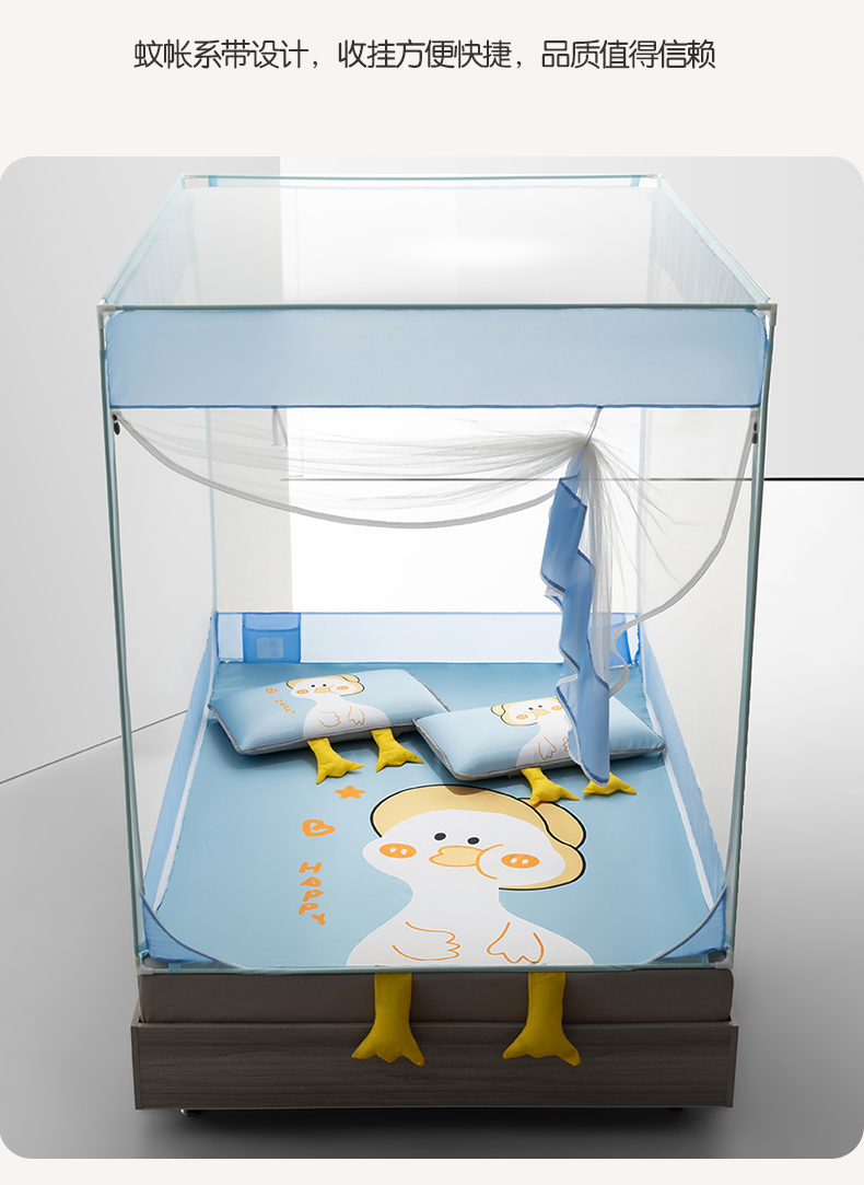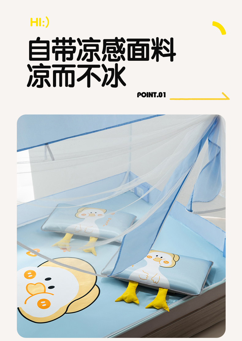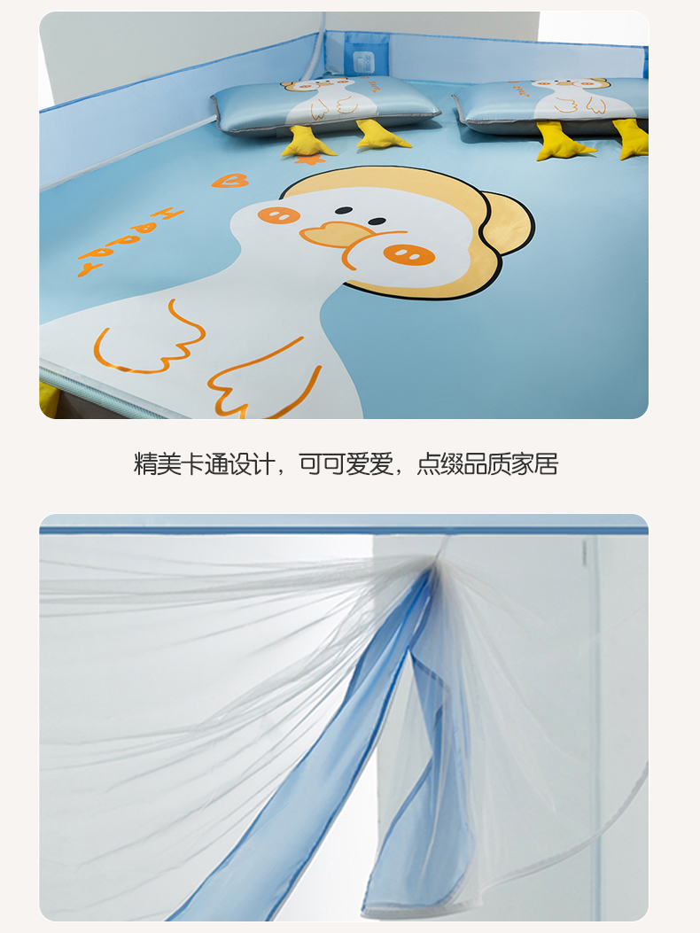 (总)飞轮海蚊帐 2026新款凉席蚊帐二合一坐床蚊帐-Z71,呆萌鸭,上学企鹅,思索鸭