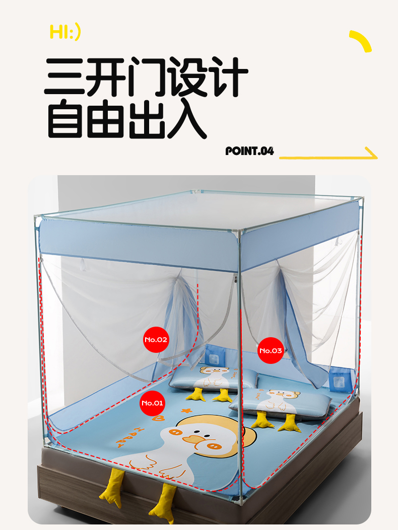 (总)飞轮海蚊帐 2025新款三开门方顶花边防摔遮光蚊帐-Z39,你好蛙,不许动,快乐家族,生活有趣,熊猫宝