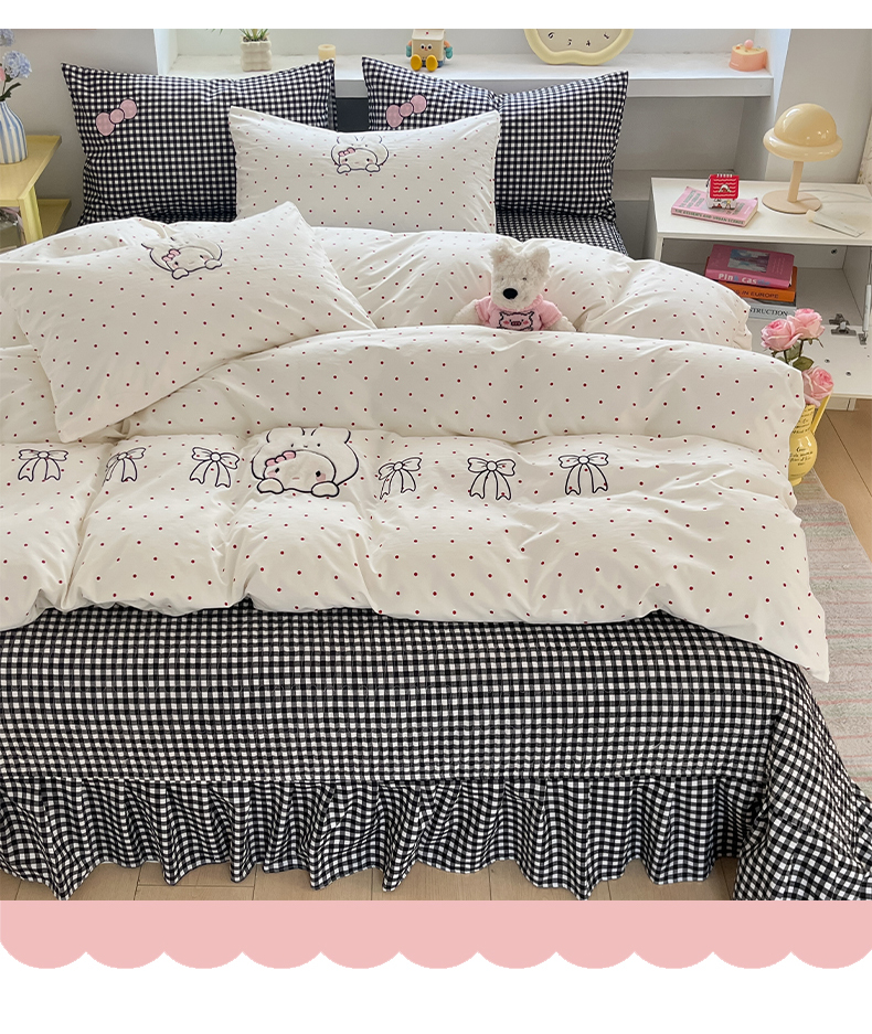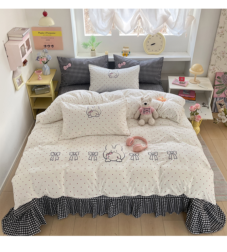 • 91家纺网 家纺一手货源 找家纺 (总)格真 2026新款古法水洗棉云感纱立体绣花贴布绣单品枕套被套三件套,小白兔波点粉,小白兔波点黑,小白兔波点红,小白兔波点兰,小白兔波点紫