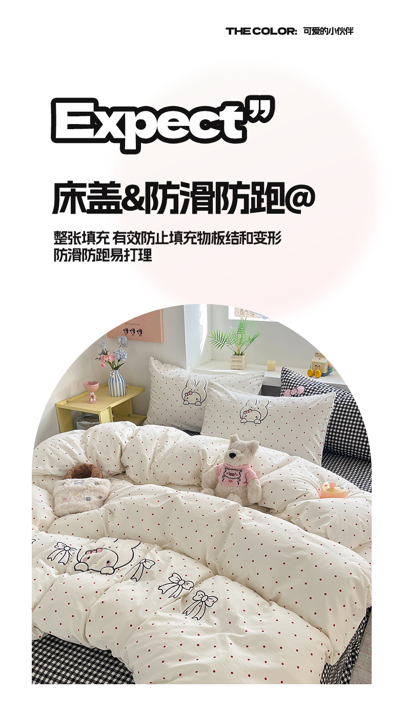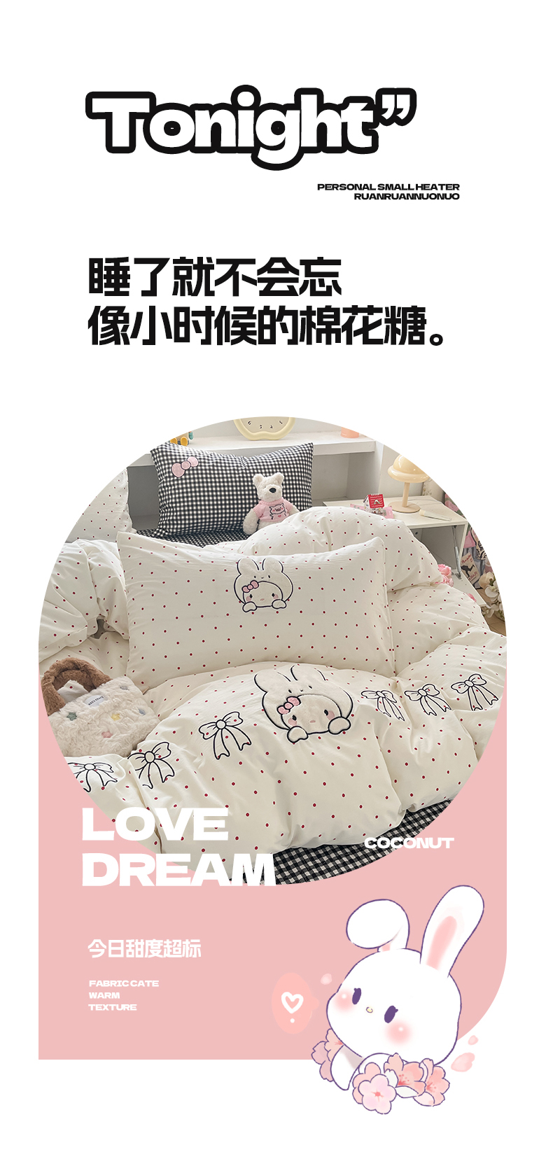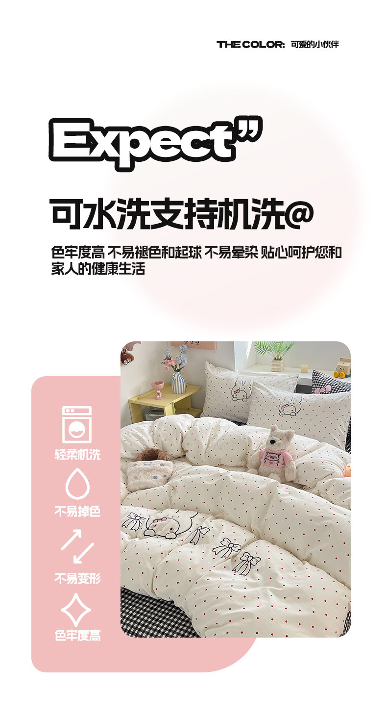 • 91家纺网 家纺一手货源 找家纺 格真 2026新款立体绣花贴布绣单品枕套被套三件套 小白兔波点红