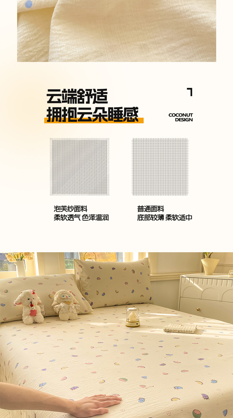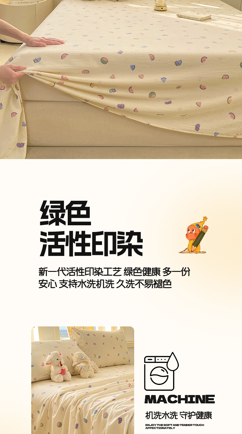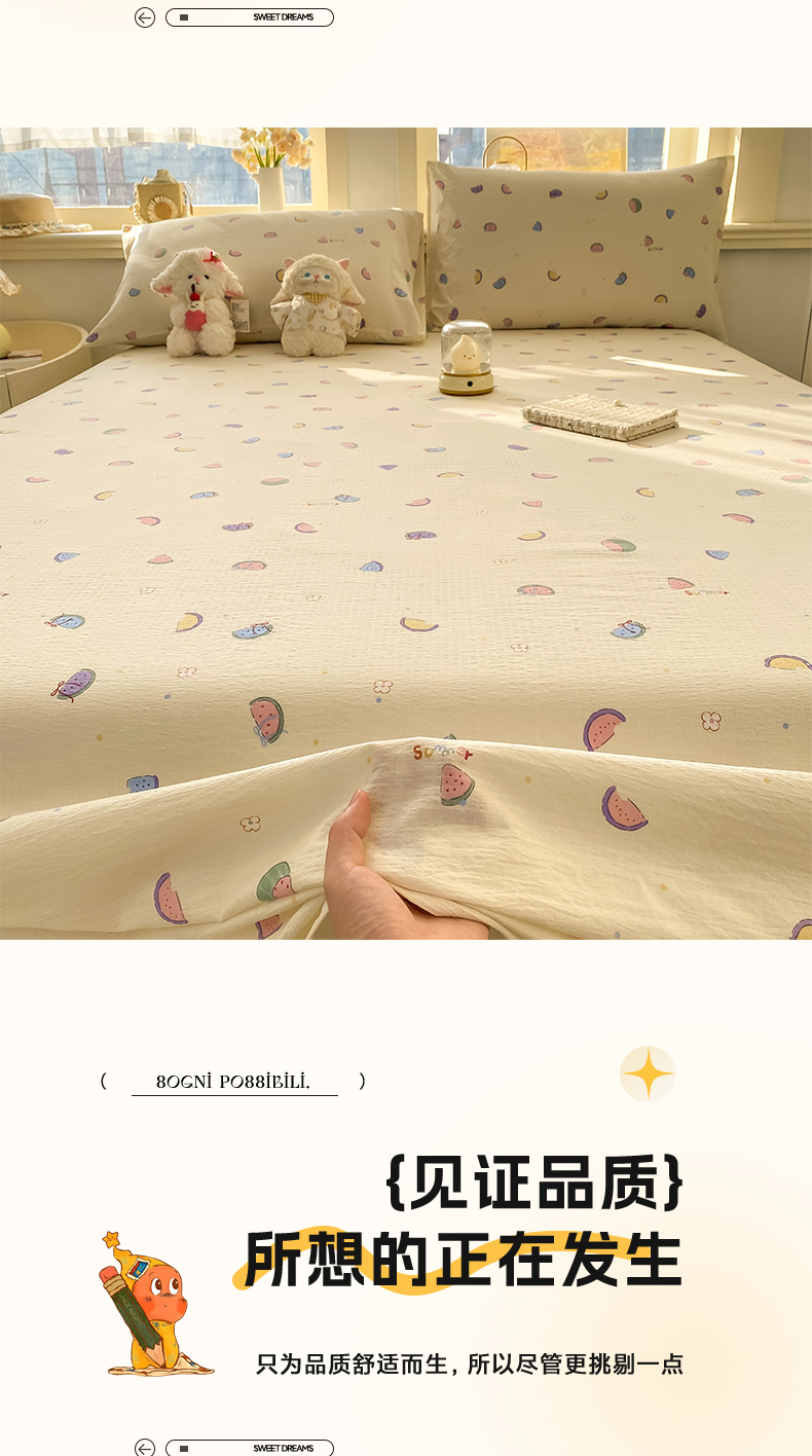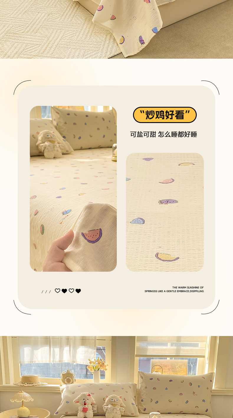 • 91家纺网 家纺一手货源 找家纺 晓时候 2026新款A类云感双层纱床单三件套单品单件床单 缤纷水果