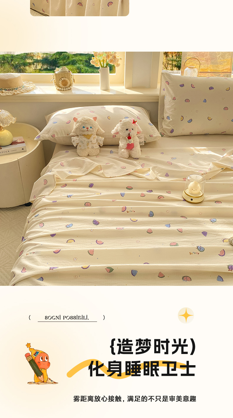 当前位置: 91家纺网 > 商品网购 > 床上用品 > 床单 > 晓时候 2026新款A类云感双层纱床单三件套单品单件床单 缤纷水果