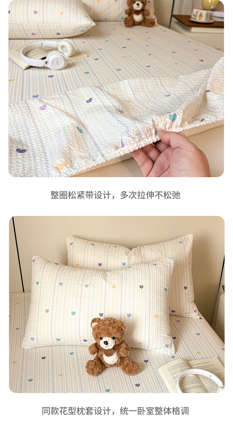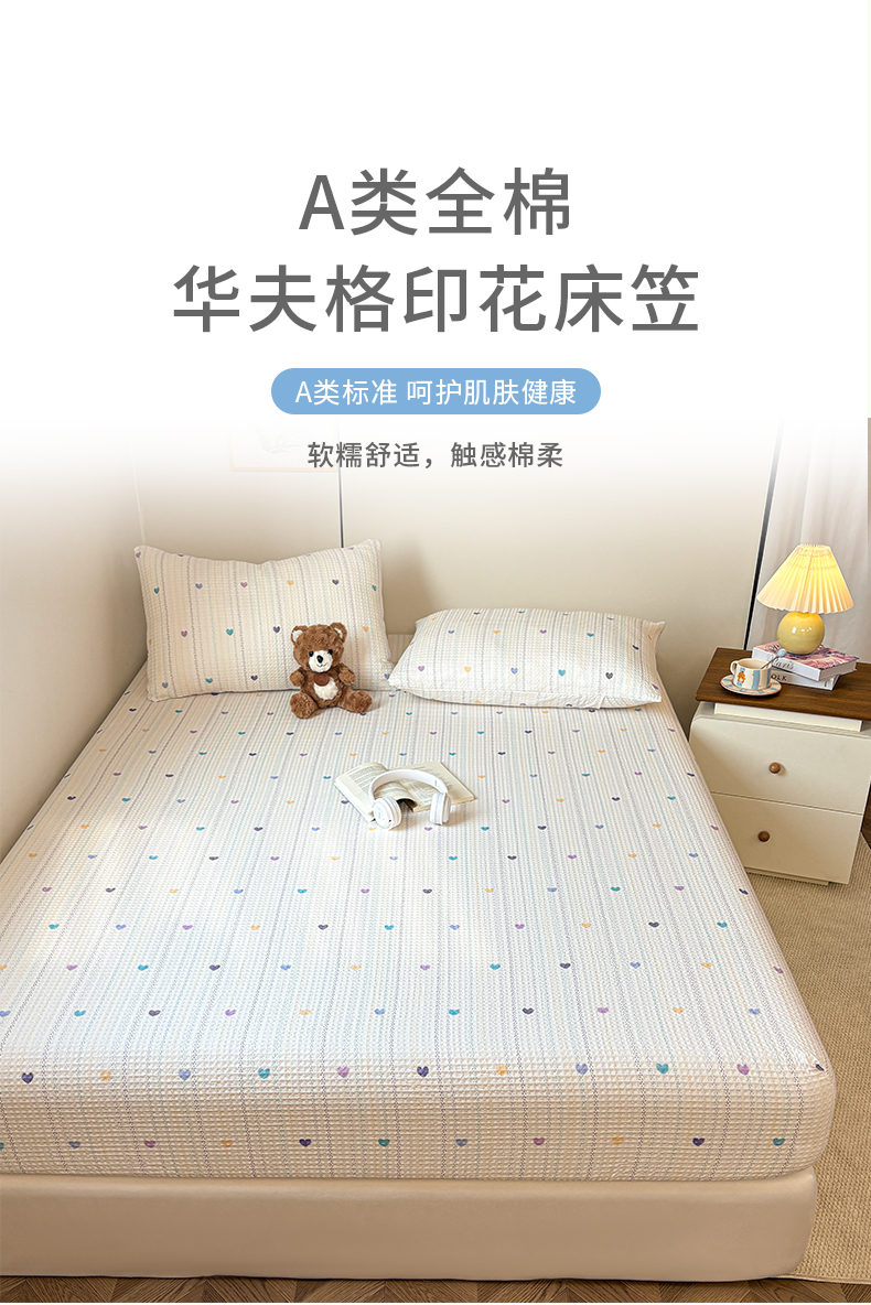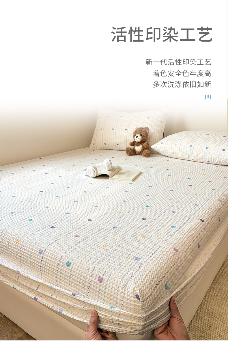 商品名称:居眠 2026新款全棉印花华夫格床笠 伊柠