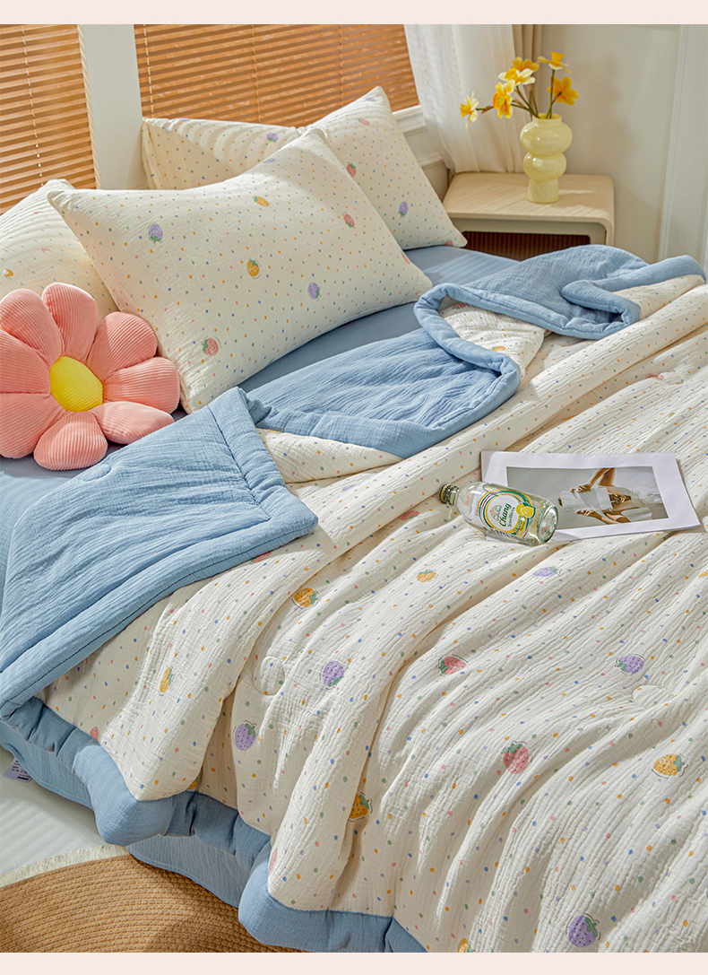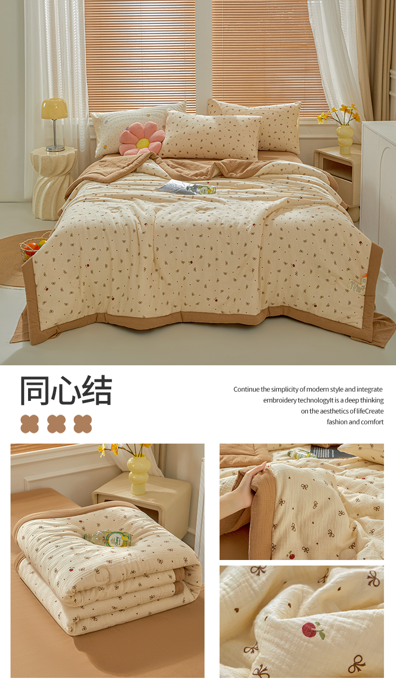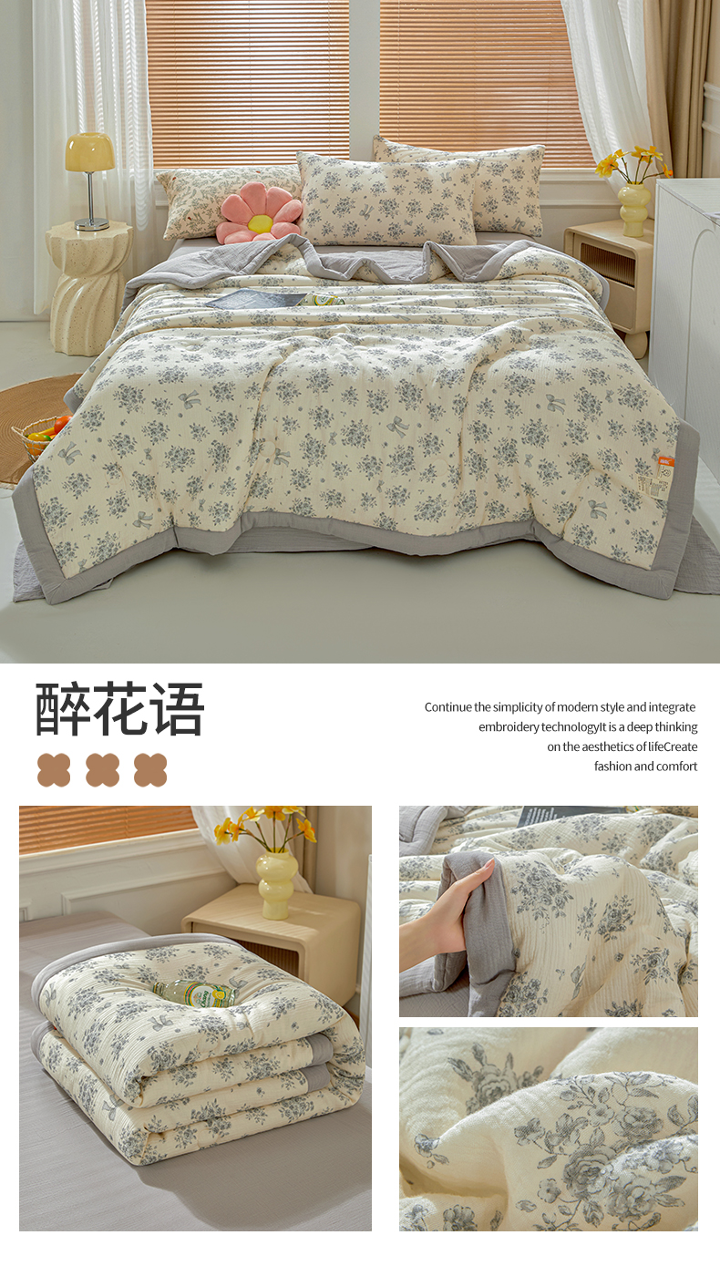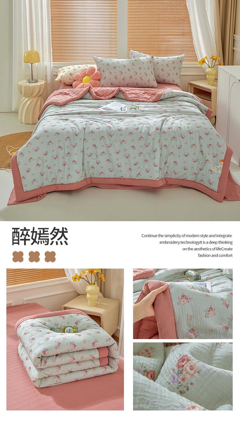 • 91家纺网 家纺一手货源 找家纺 恬思语家纺 2026春夏新款里外全棉皱皱纱印花棉花夏被夏凉被空调被 月伴湾