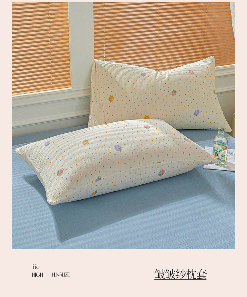恬思语家纺 2026春夏新款里外全棉皱皱纱印花棉花夏被夏凉被空调被 月伴湾